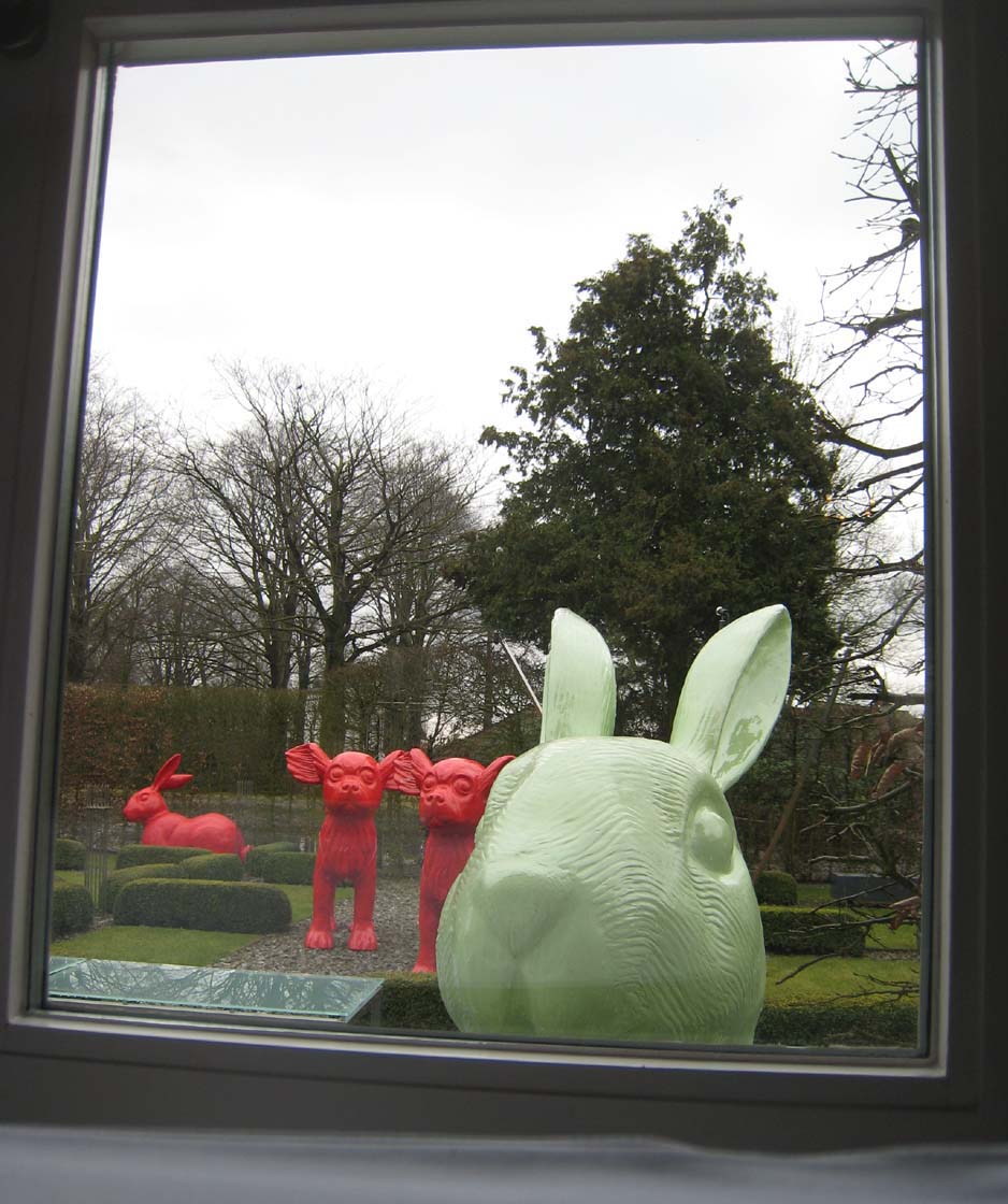 It made for a for a very interesting juxtaposition of the quiet soft interior mixed with the over exaggerated comical animals in the garden. The big green rabbit sat just outside the window of our table, as if he was asking for just a little bite. Good thing we had fish and veal……not sure I would have been able to eat rabbit : )
