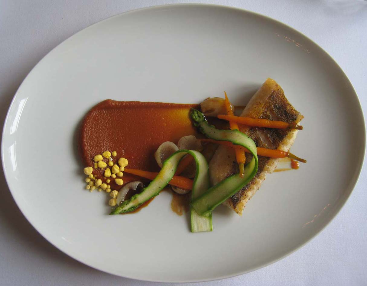 My dish: pike perch, baked, cumin, petite carrots, onion, and asparagus. The sauce was carrot.