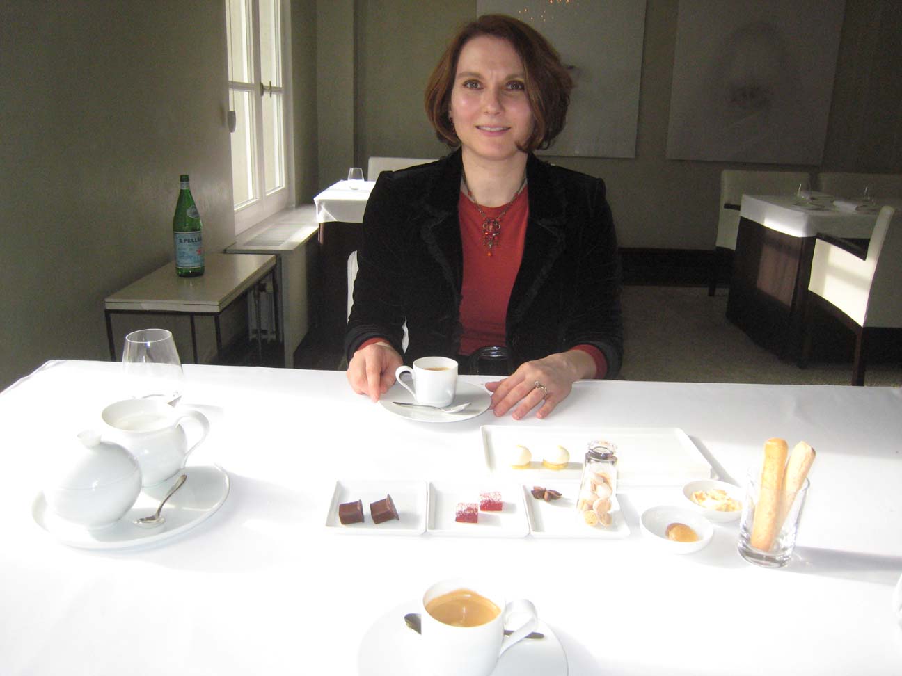 Post-dessert & coffee. We have learned that the coffee course in expensive restaurants in Europe is an experience in itself. The coffee comes….
