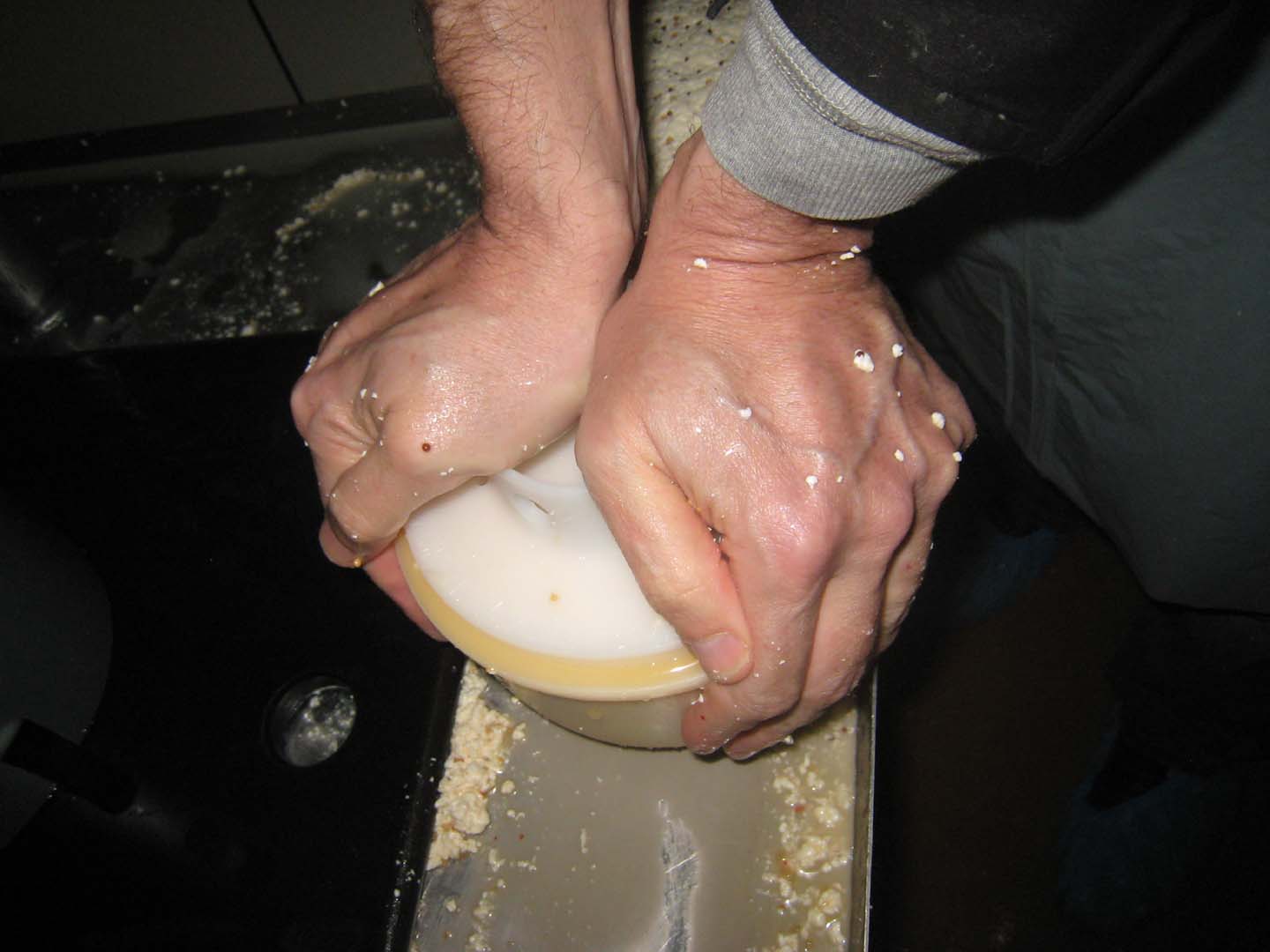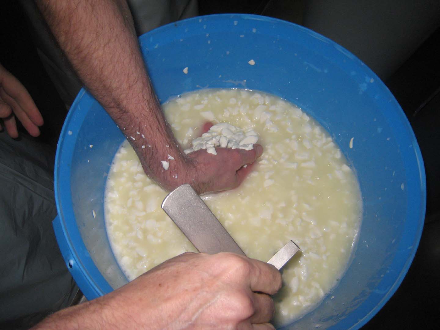 After it got to a certain size, we had to use our hands to break the curd up as small as possible – the size of a pea.