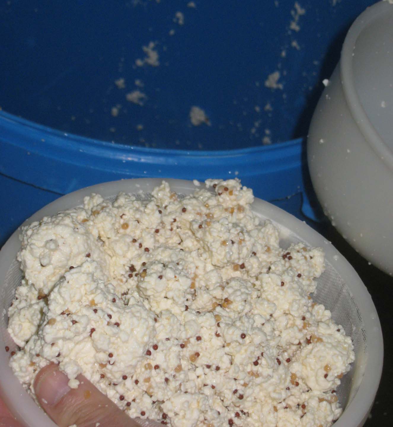 We choose horseradish and ginger for one, shown here before mixing in the spices into the curd.