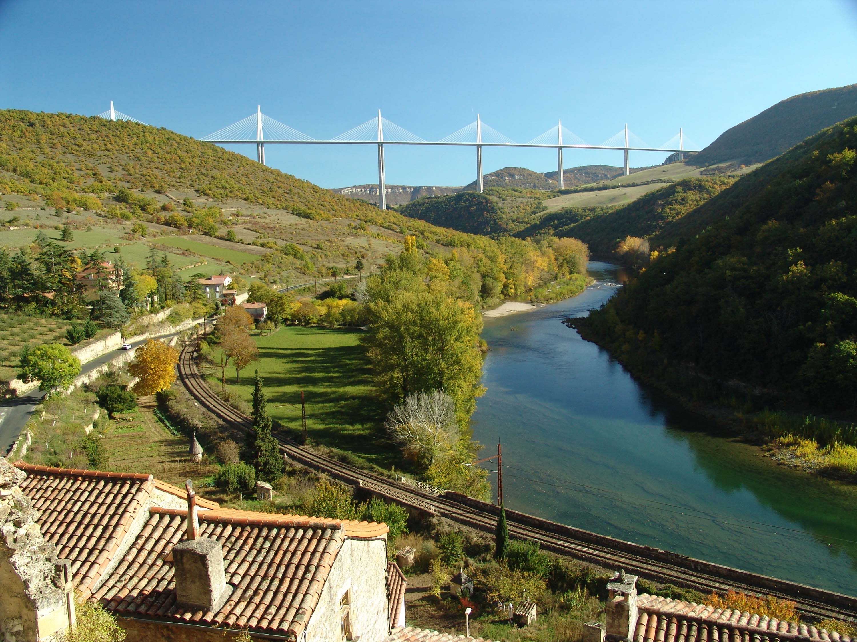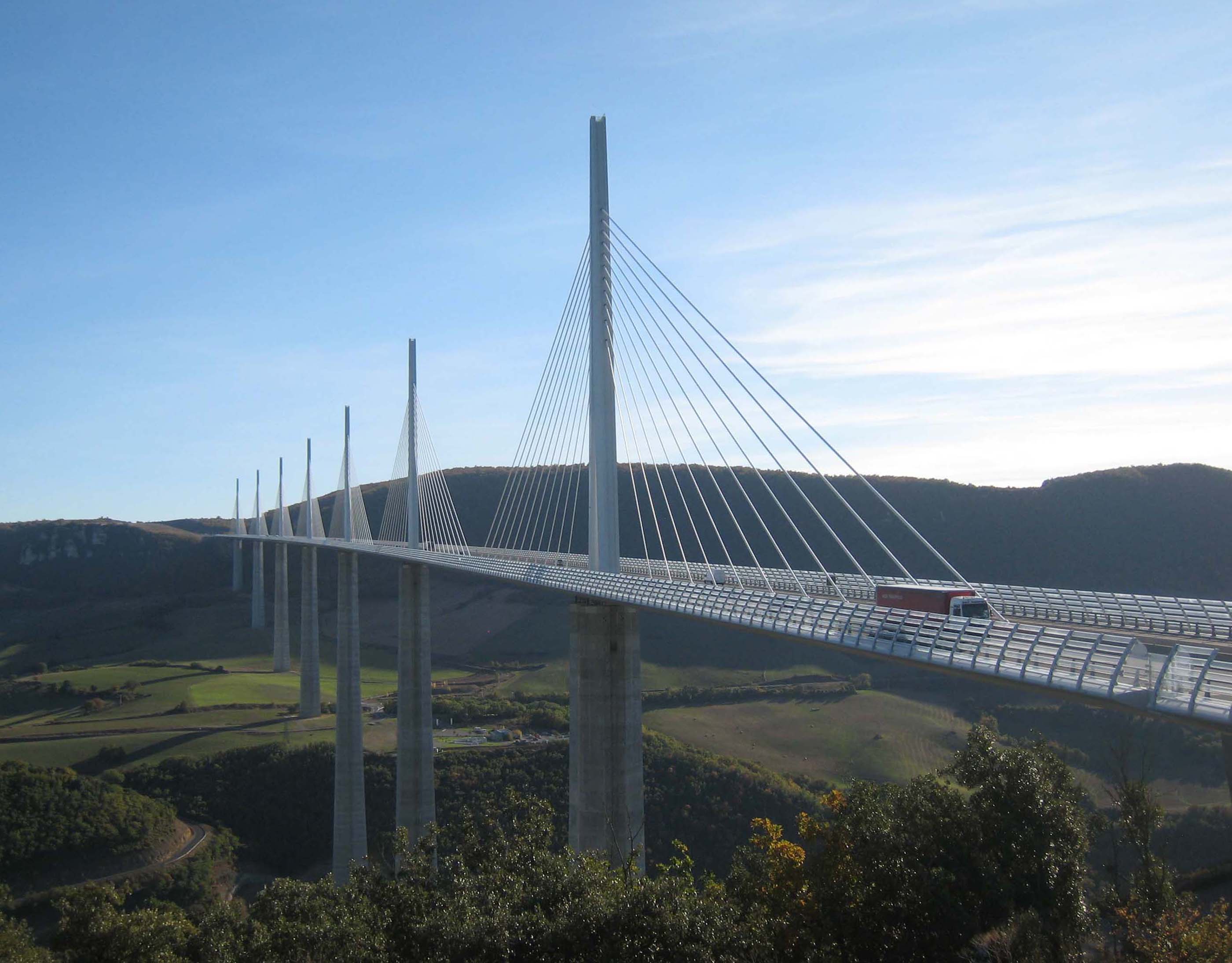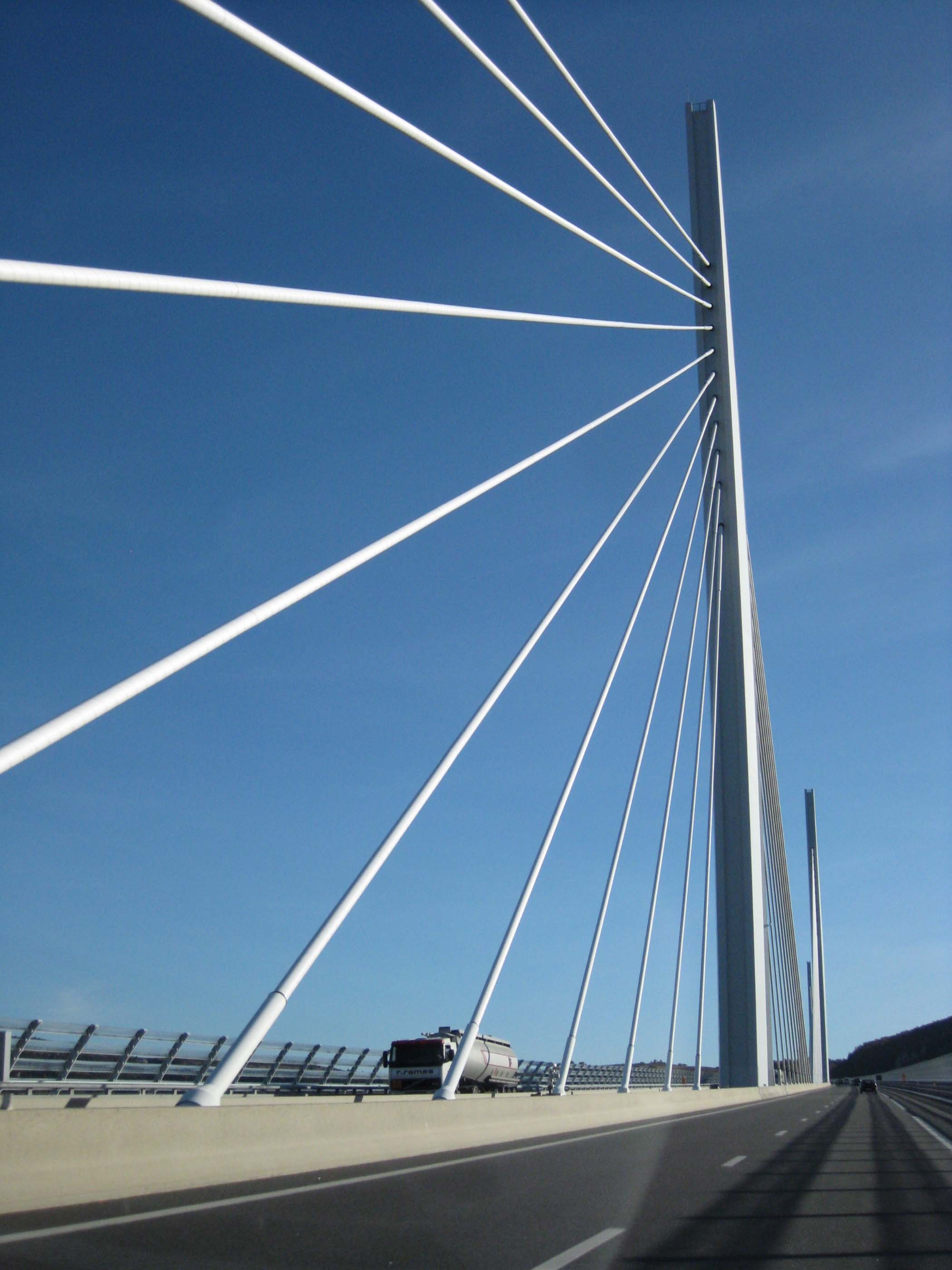 It spans across the river Tarn and was designed by British Architect Norman Foster.  It cost 394 million euros to build.  One quote said it had the delicacy of a butterfly.  That was a good description of it.