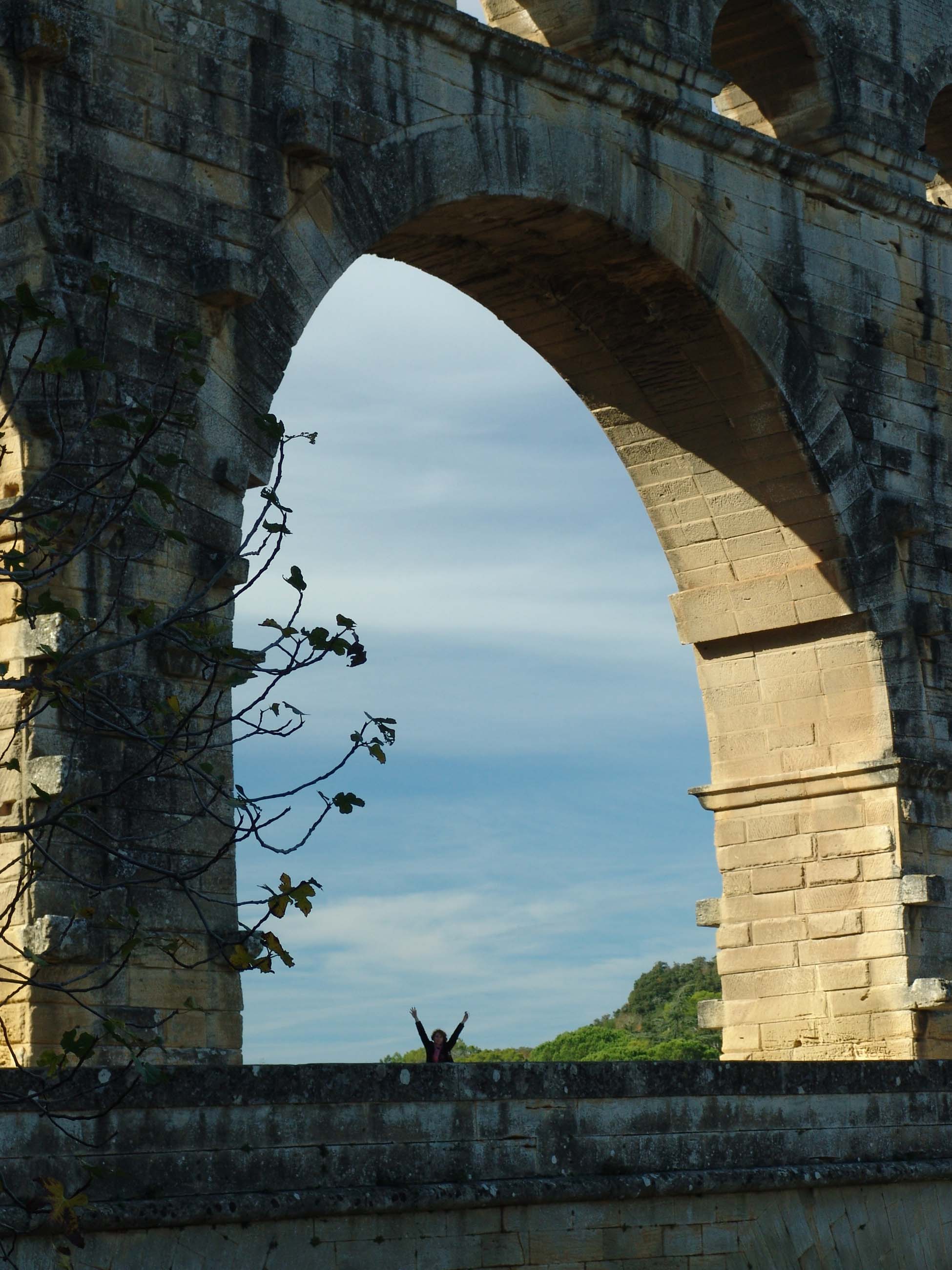 Built from blocks of local yellow lime stone, it is the highest aqueduct ever built by the Romans and is remarkably well preserved.  We were there many years ago and were able to walk along the middle tier, now you are only allowed to walk along the bottom tier.  You can really get the feel for how immense this structure is ….look how small I look.
