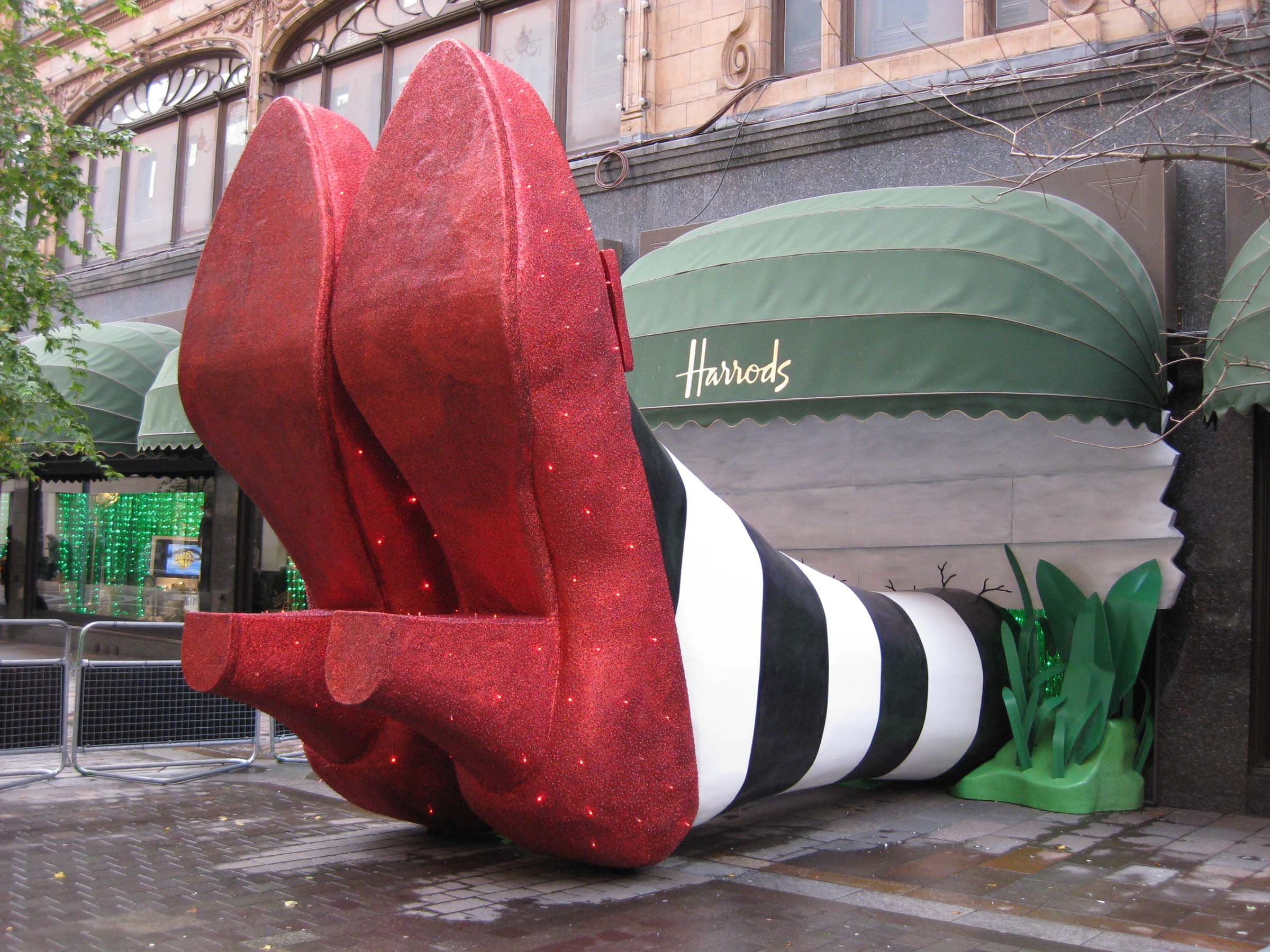 Harrod's, the famous department store in London, had a Wizard of Oz holiday theme with giant ruby red slippers coming out the side of their building.