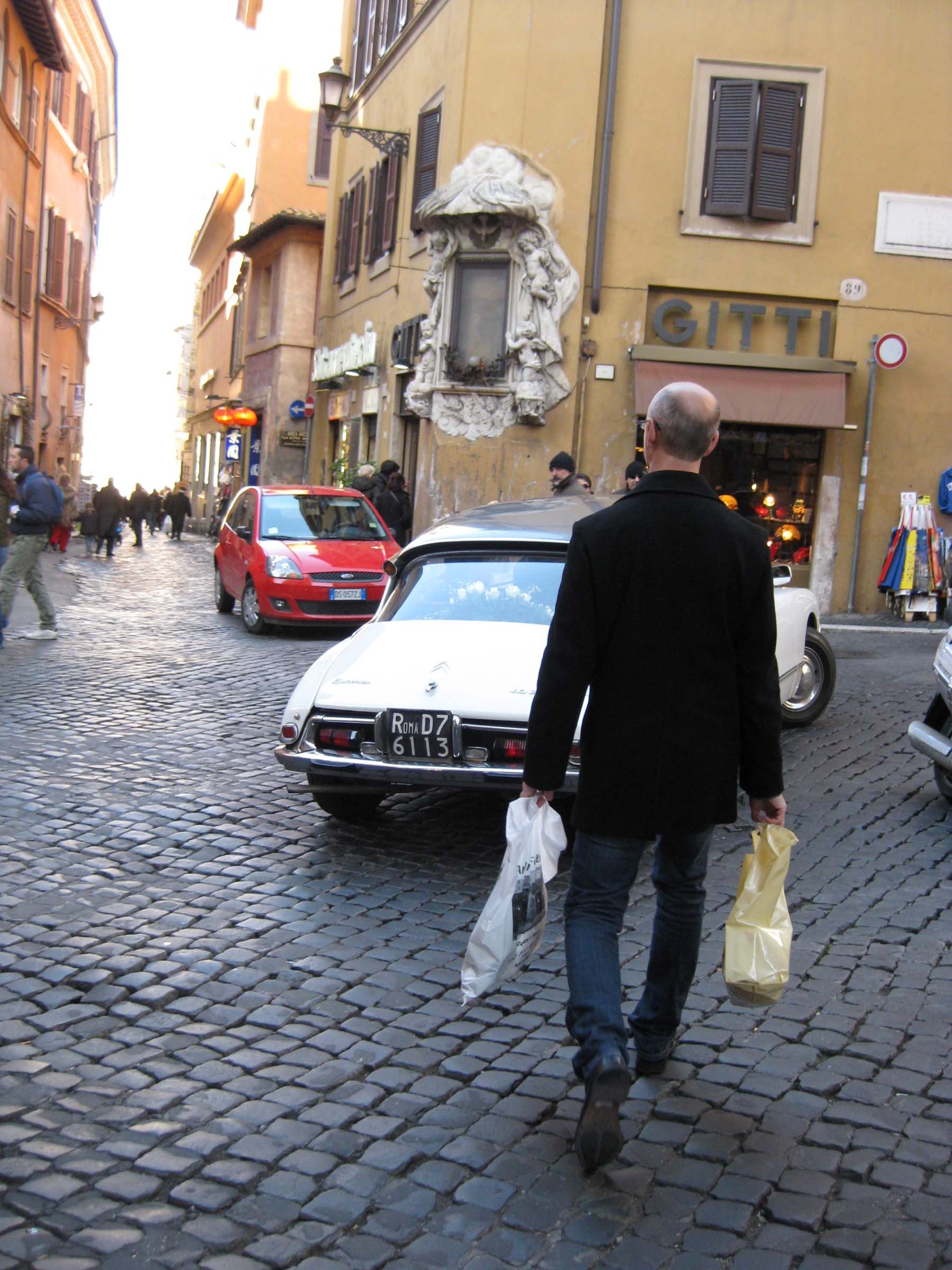 I love this photo of D – shopping bags in hand, cool old car passing by.