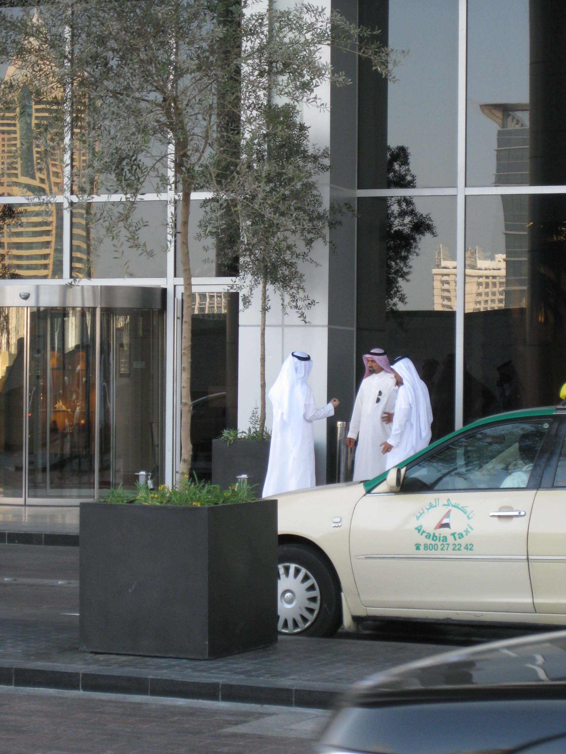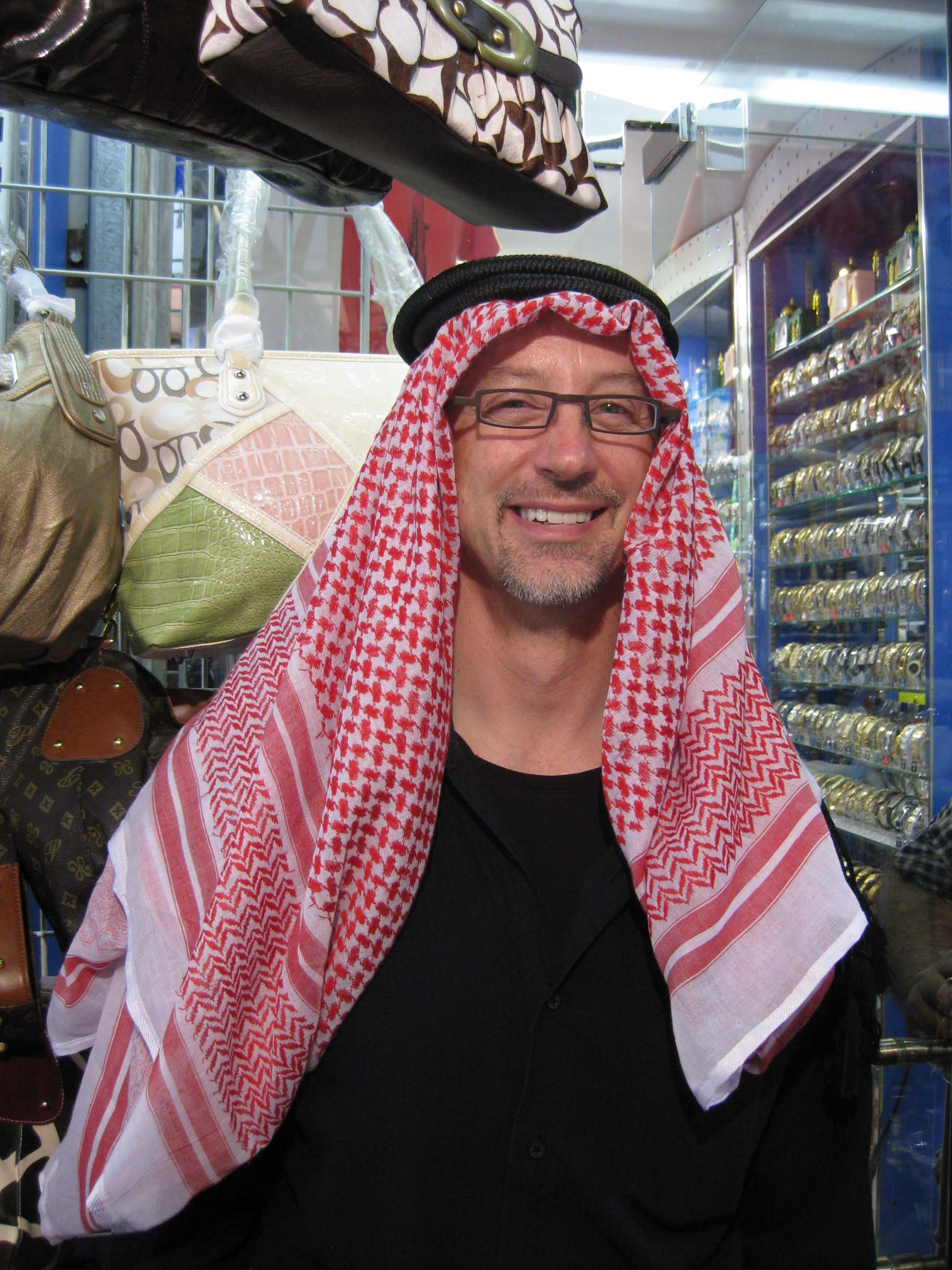 Both alcohol and pork are forbidden by Muslims. Dubai is the most liberal of the Middle Eastern countries so it does allow other religions to practice openly. The men wear the traditional white robe called a thobe and may I say they do look very dashing in them. The headscarf they wear is called a guthra and is usually white or red checked (you can see both in the photo below).