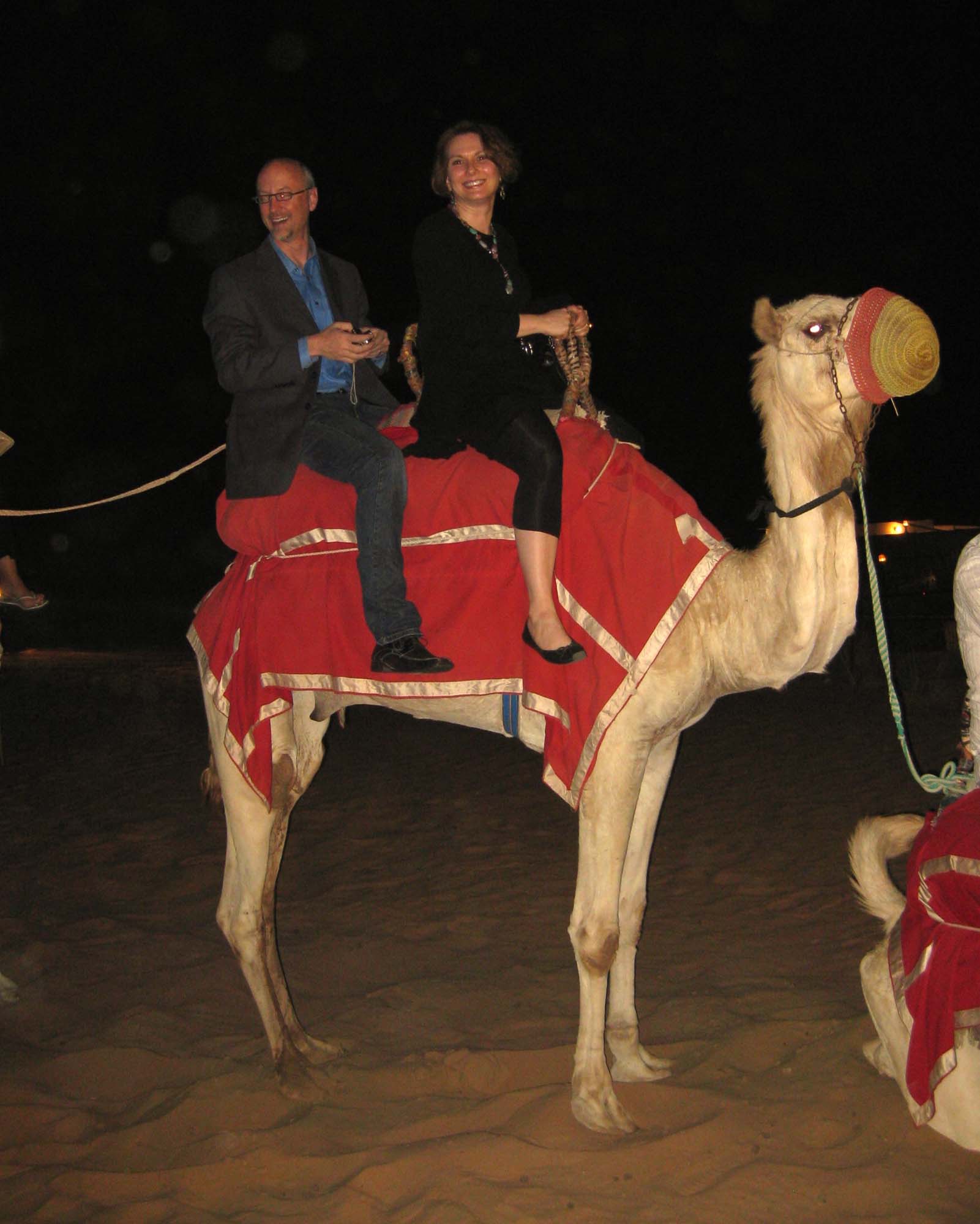 The safari dinner was a blast. It started out with 4-wheel drive vehicles picking us up at the hotel. We drove 30 minutes or so and then the driver went off-road into the sand. We drove for 10 minutes through the sand – bouncing all over the place. Thank goodness I had secured the front seat, as I am sure I would not have made the ride in the back.