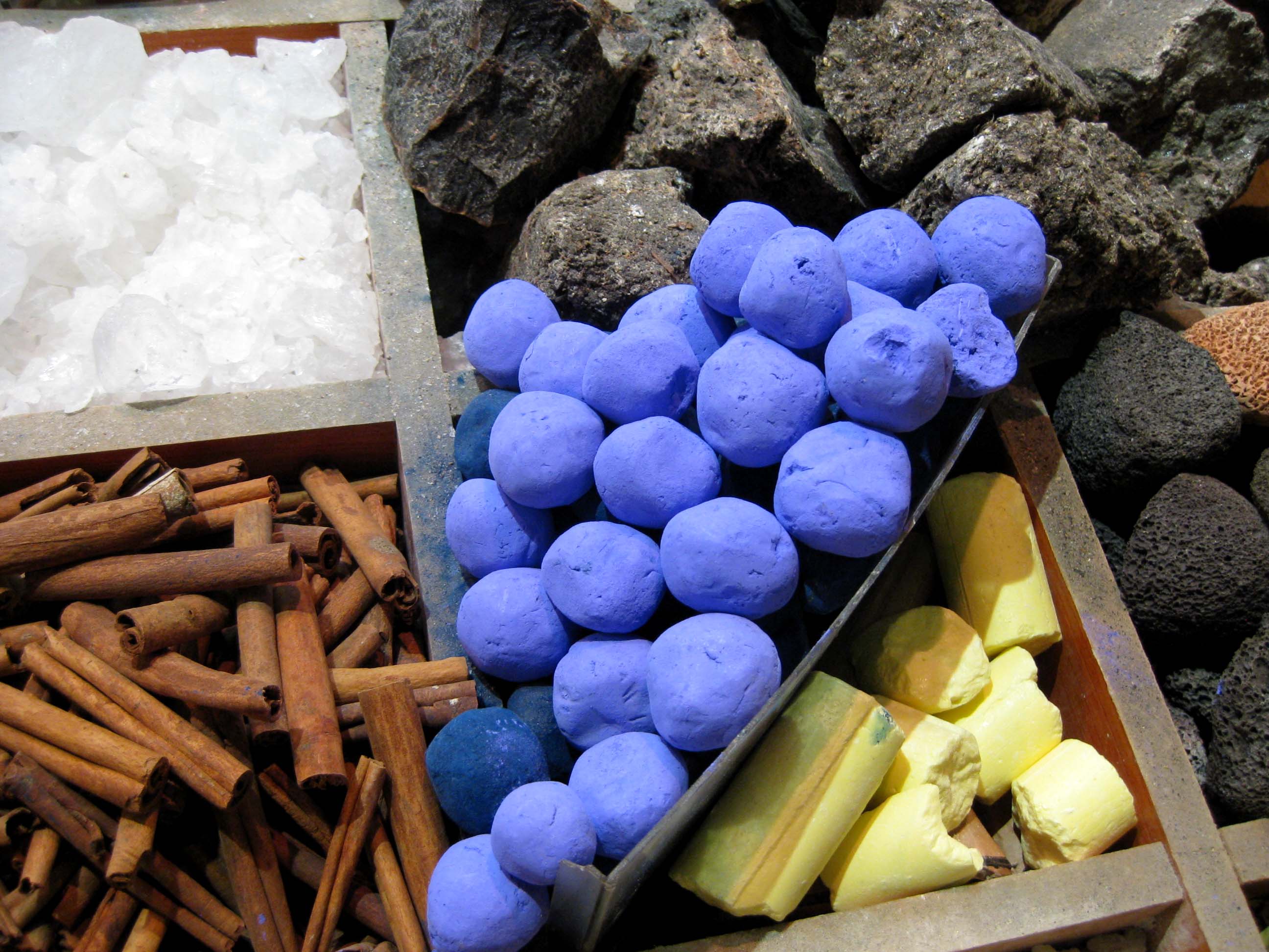 The souks are filled with color and intoxicating smells. The blue is indigo for dying clothing.
