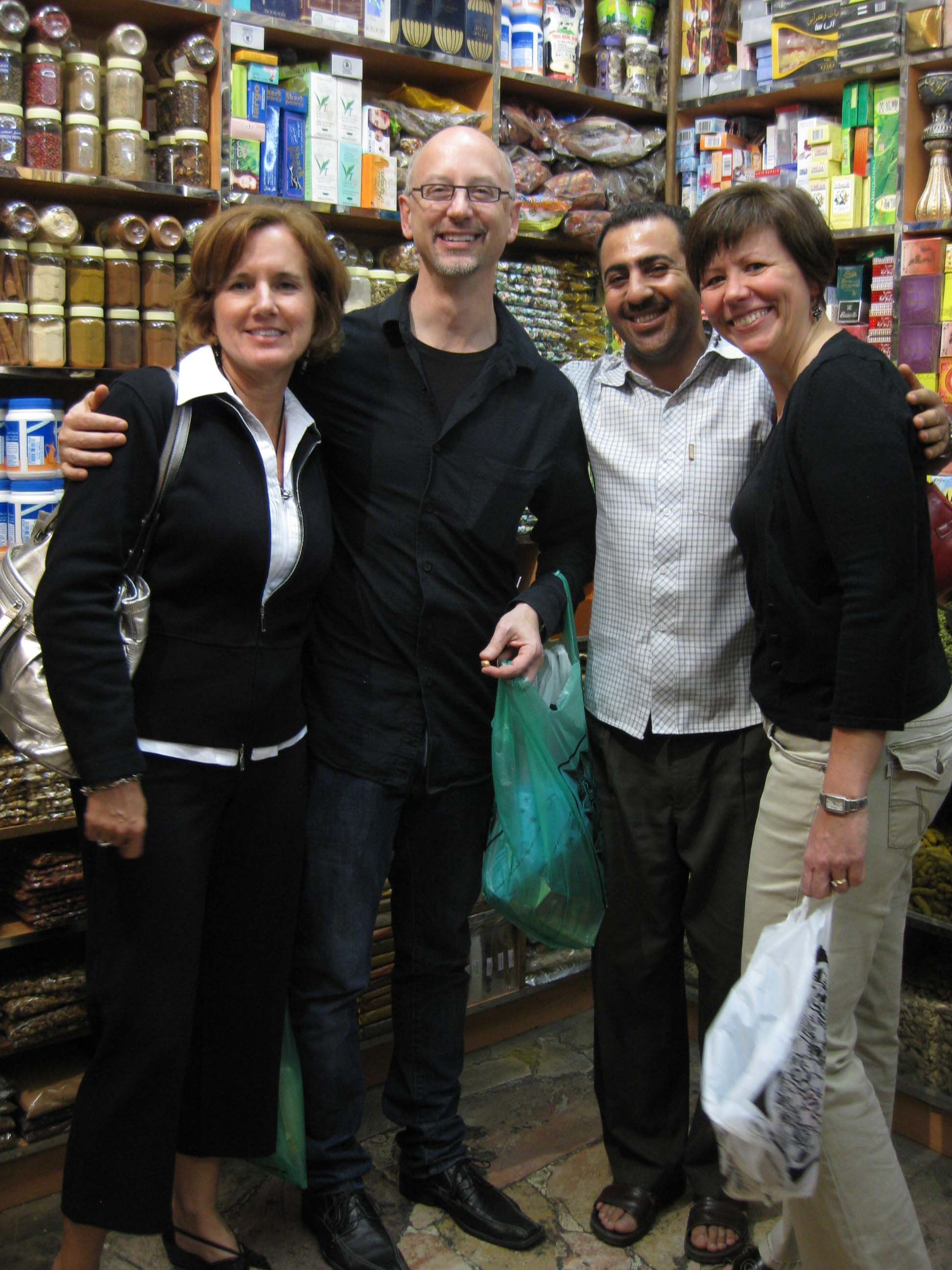 One of the Souk vendors jumped right into the middle of our photo – charming!