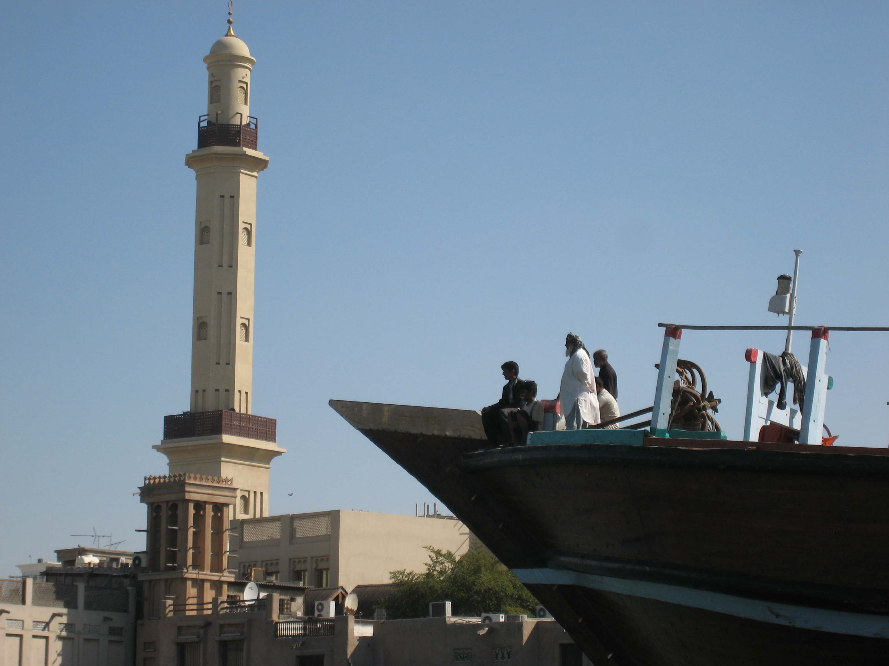 Sharing the waters were the much bigger dhows (old fashioned colorful wooden cargo boast) which load and unload all sorts of cargo on the dock. They run merchandise out to large cargo ships in the gulf.