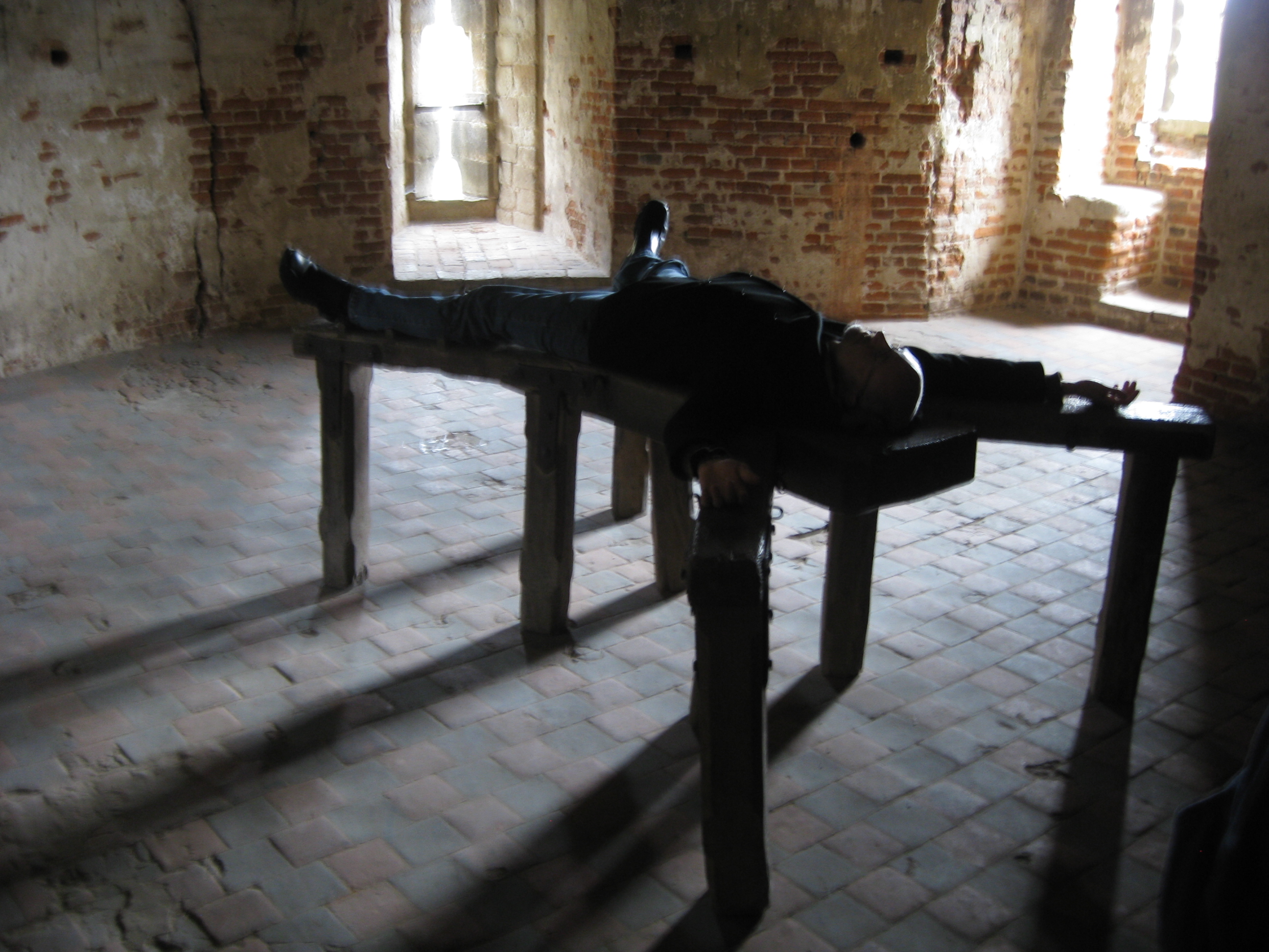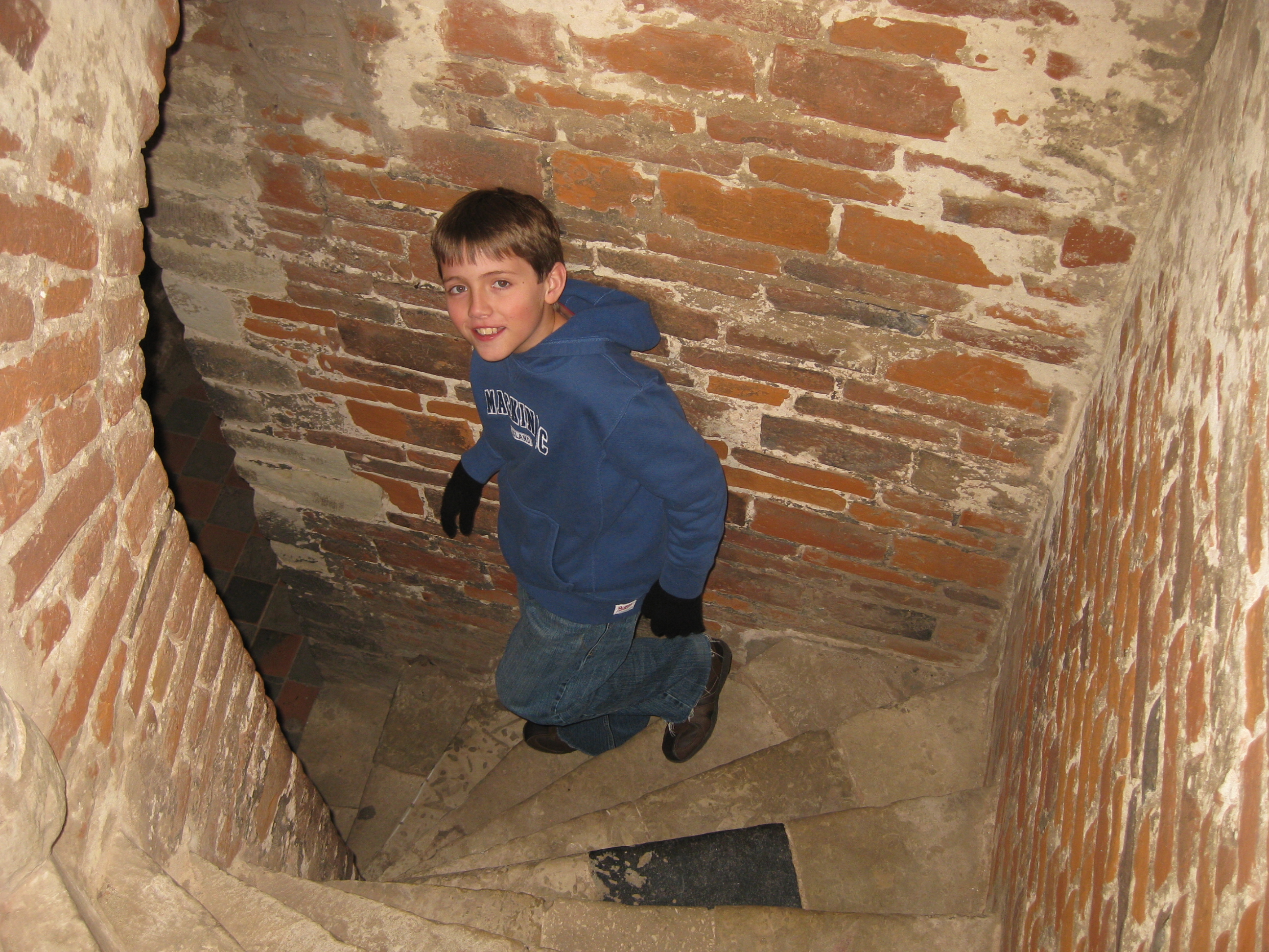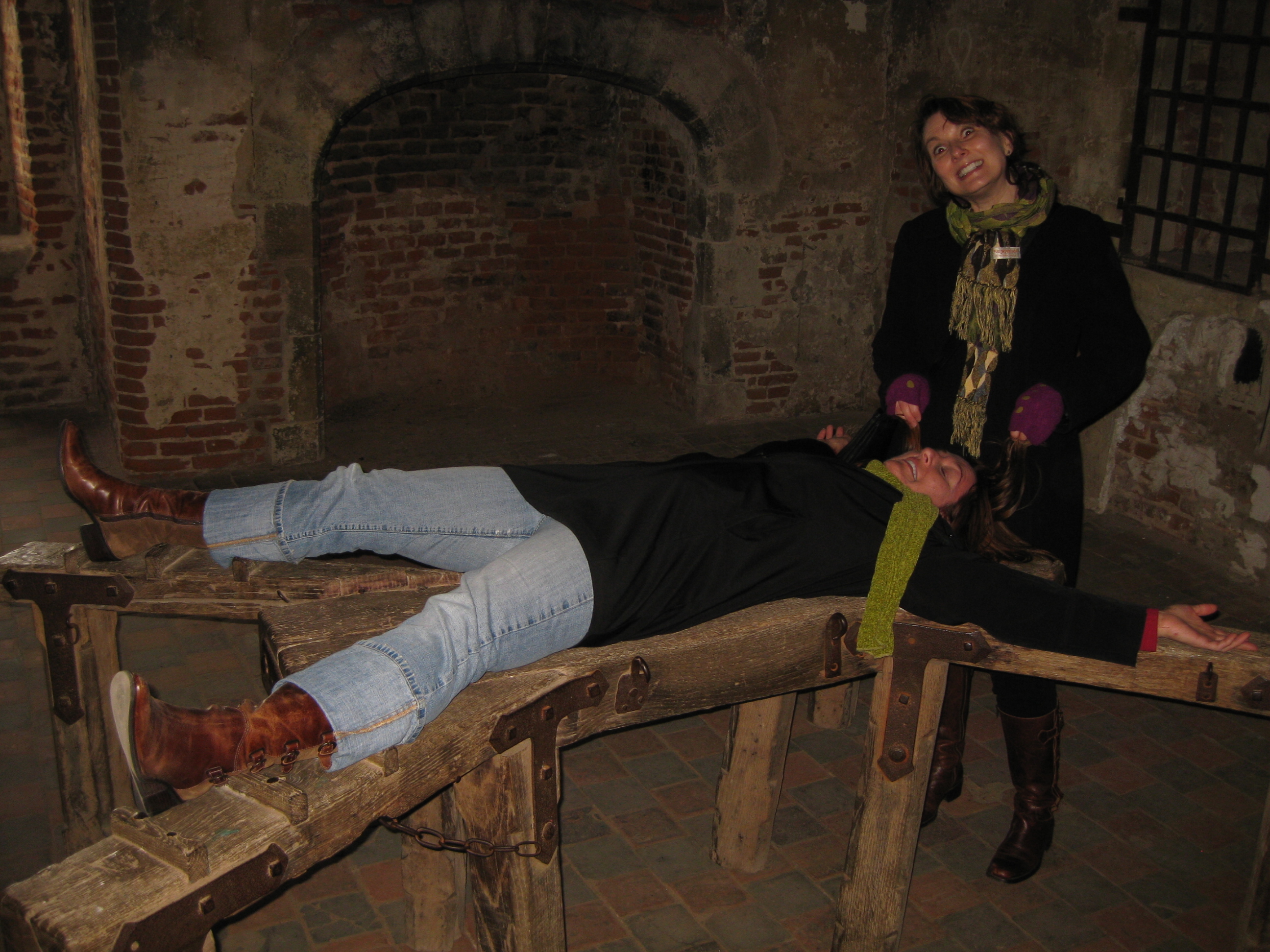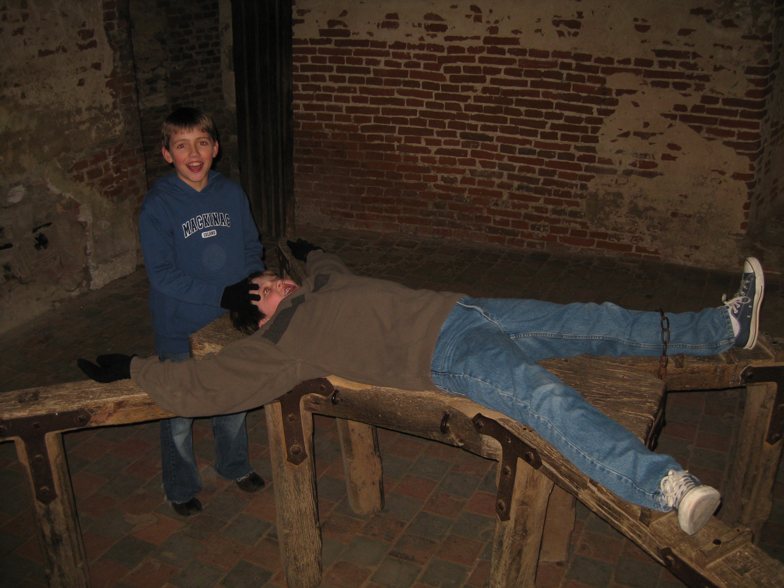 We were the only people there which made it even more special. D ran ahead and discovered the torture chamber. The rest of us were startled when we walked into the room and found him on the torture rack.