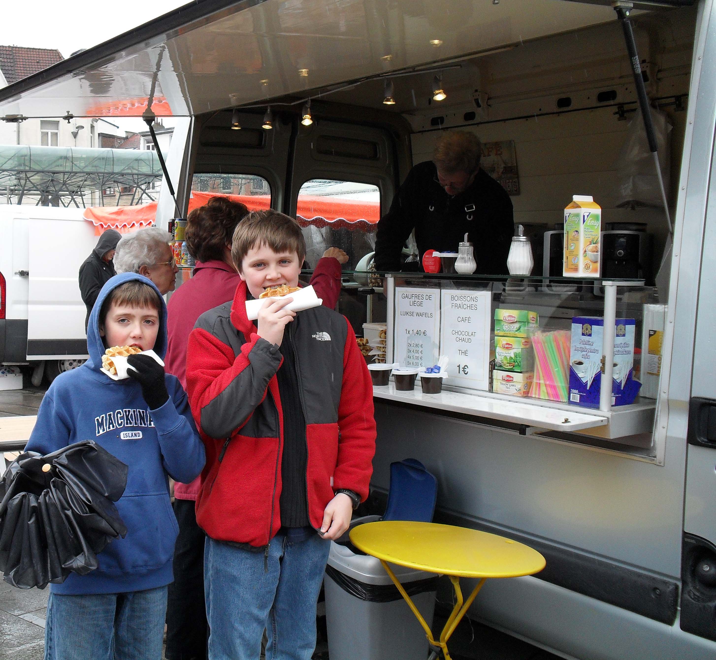 Day 2: It was all about eating. We took them to our local market where Sean and Liam started the day off with waffles.