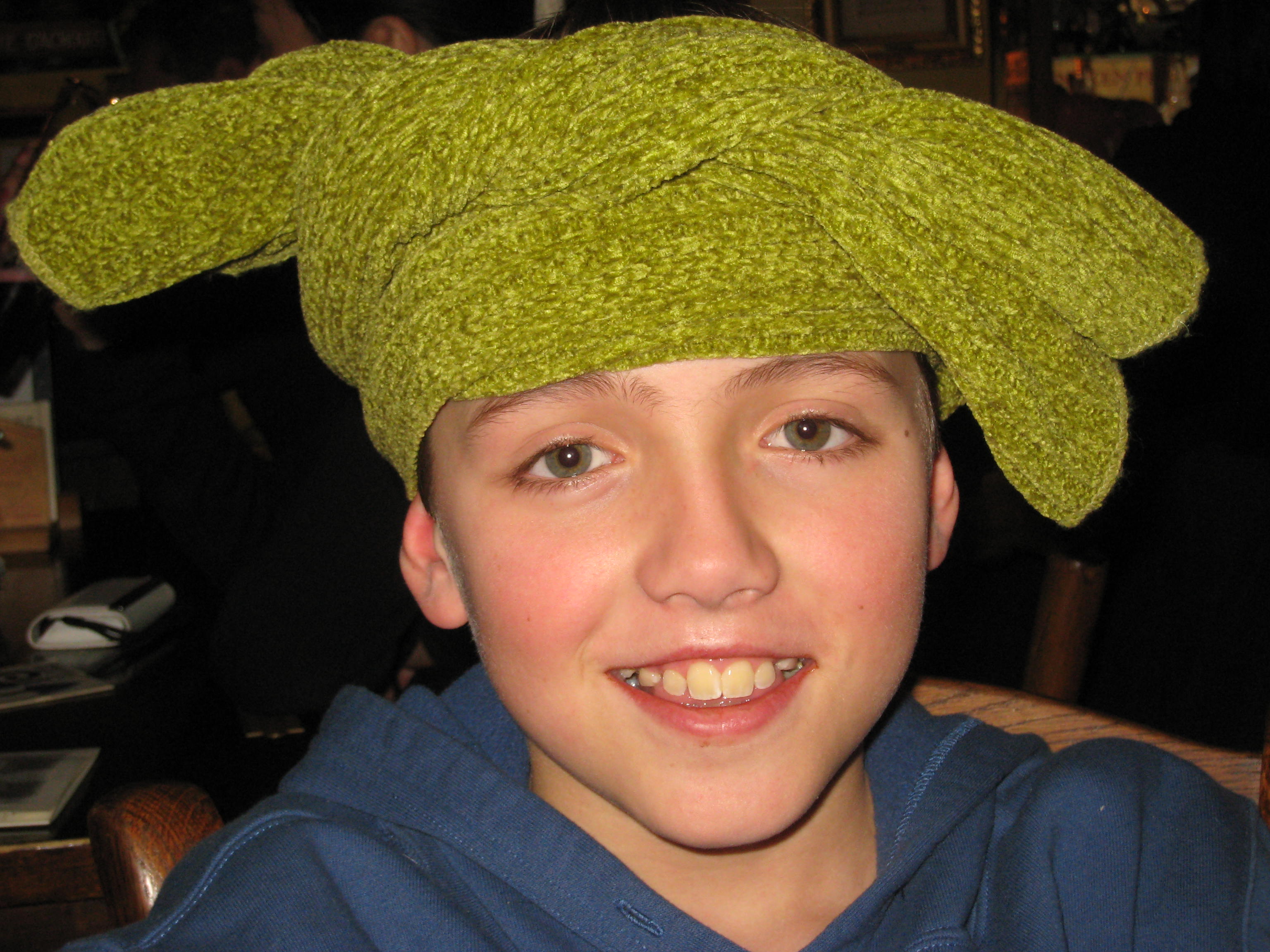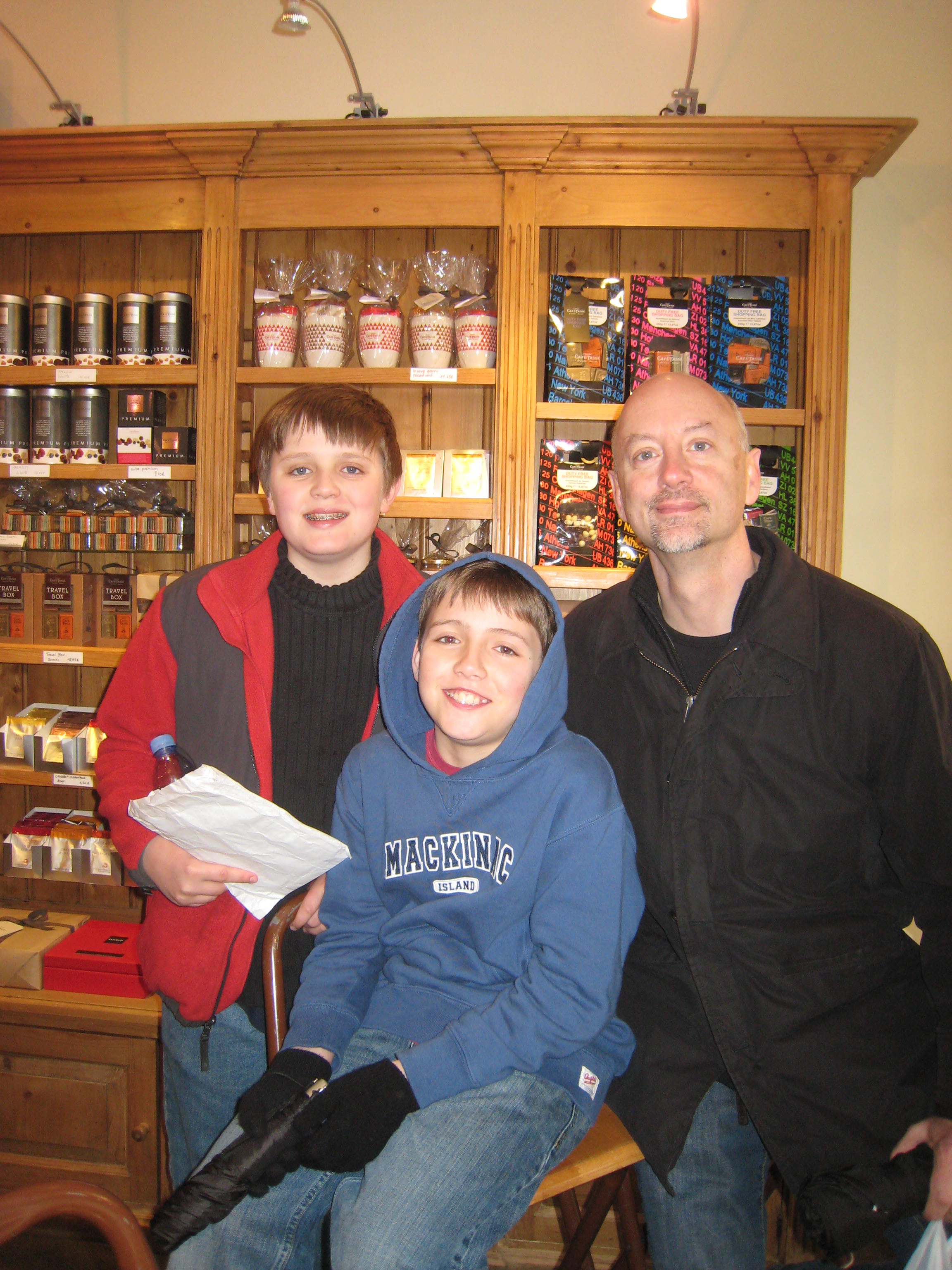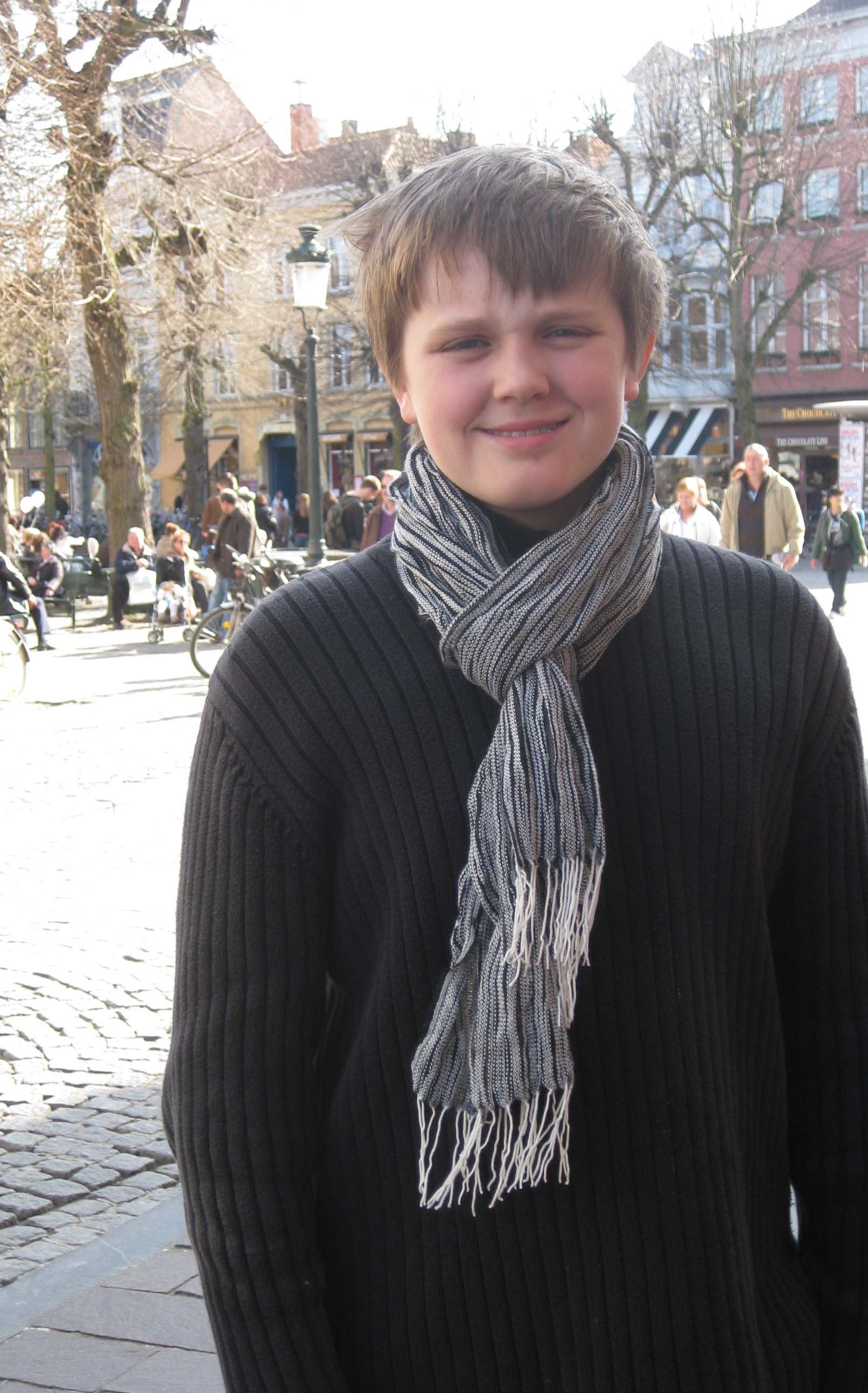 Liam had borrowed Donald's sweater and scarf as it was a little chilly. He decided he wanted to buy a scarf to take home. We found this one and Donald gave him the sweater. He is now looking very European!