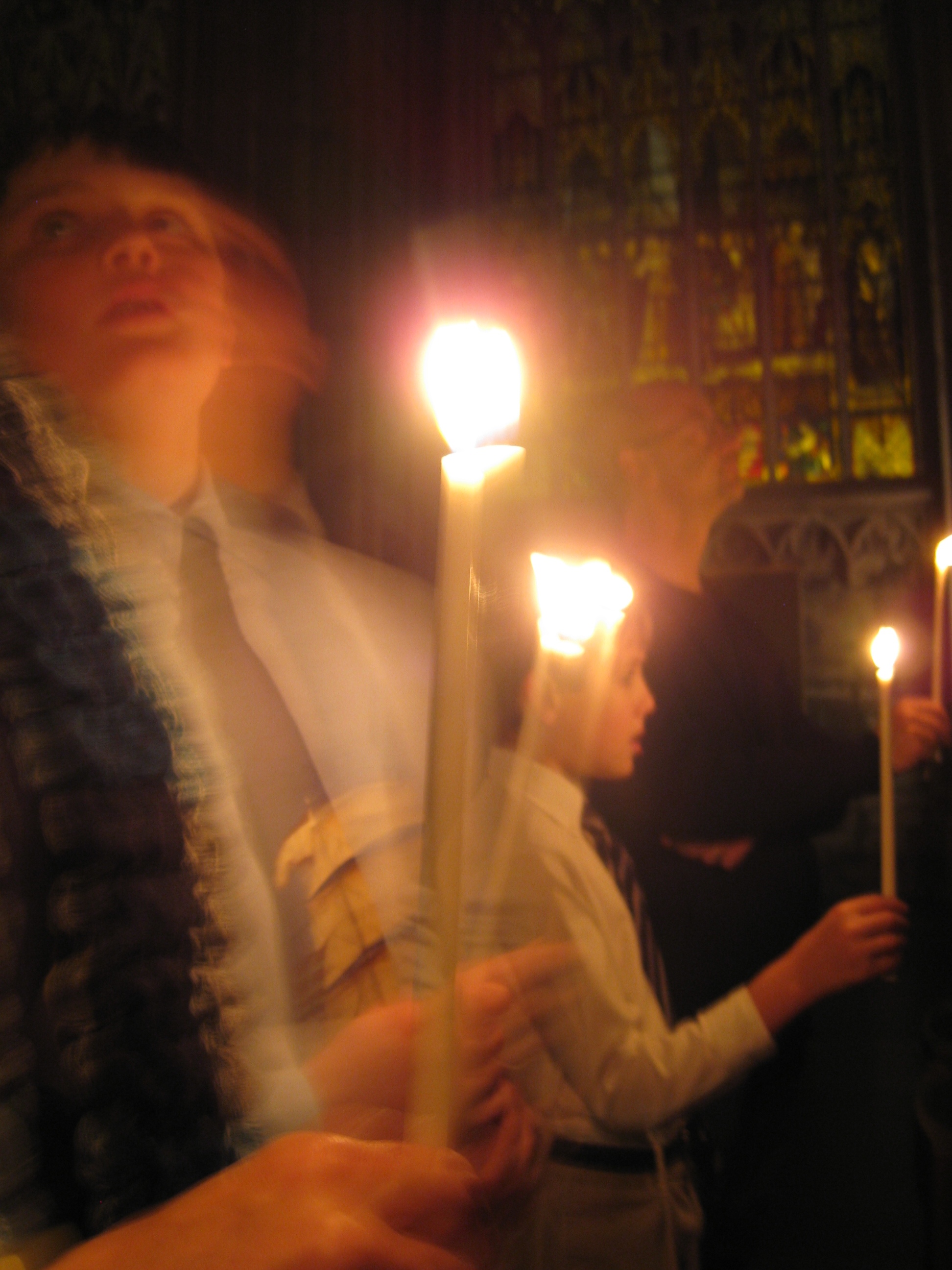 The priests walked in with very large candles and each of us had a candle which was lit from the large ones. The first 15 minutes was in candlelight. It was very special. I had to snap a photo (I know I know – not during the service!). Blurry since I couldn't use a flash, but still interesting.