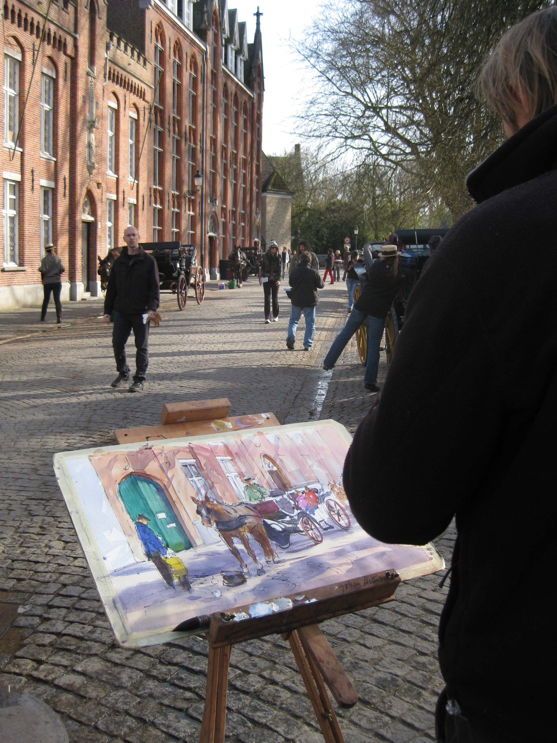 An artist taking advantage of the beautiful street scene. Think D will be in his painting?