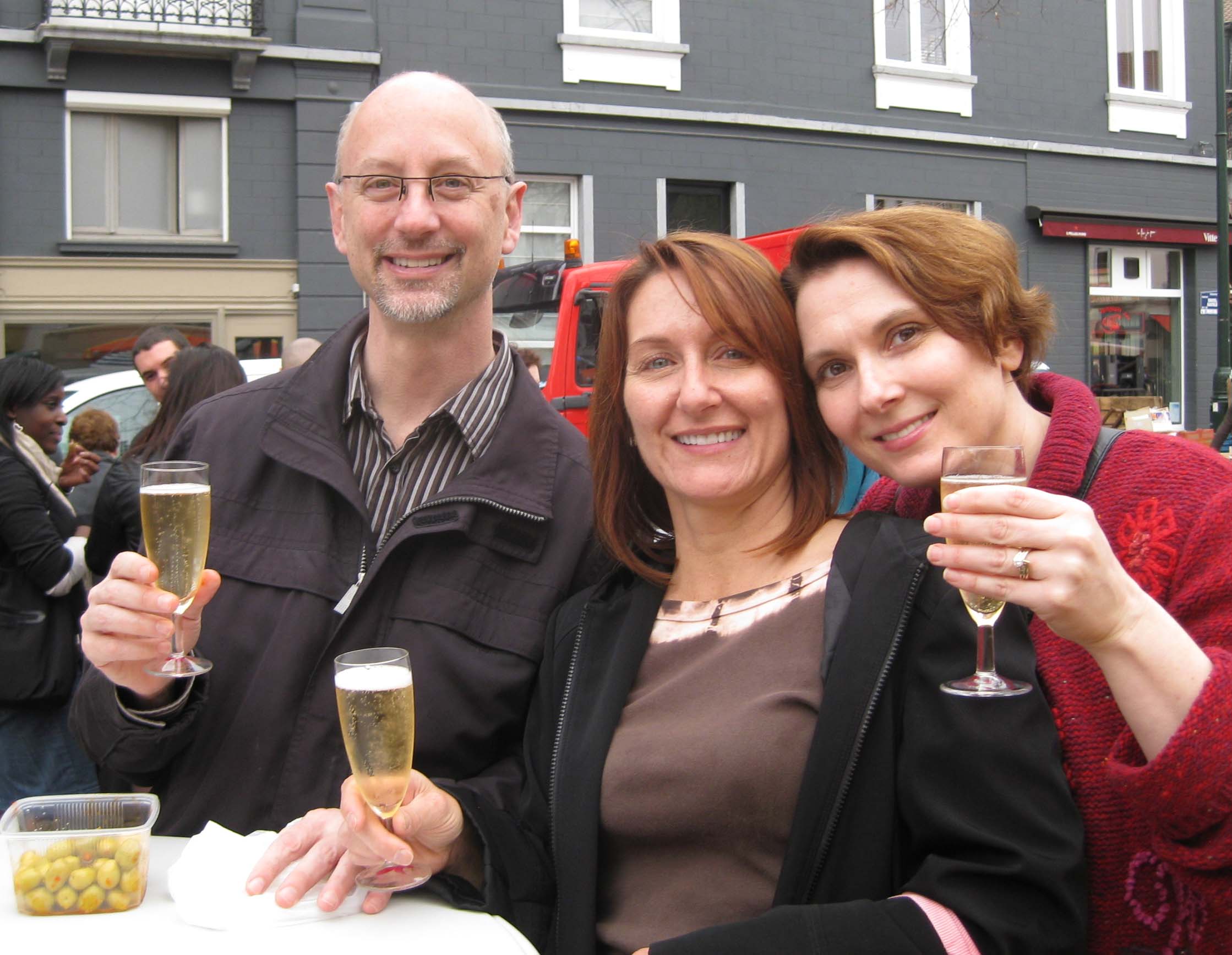 Day 3: Easter Sunday. Maria, Sean and Liam went to another Cathedral for noon service. We then ate a big lunch of Cassoulet and speculoos and chocolate bread pudding for dessert. We then took a long walk in a neighborhood we knew was lively for a holiday.