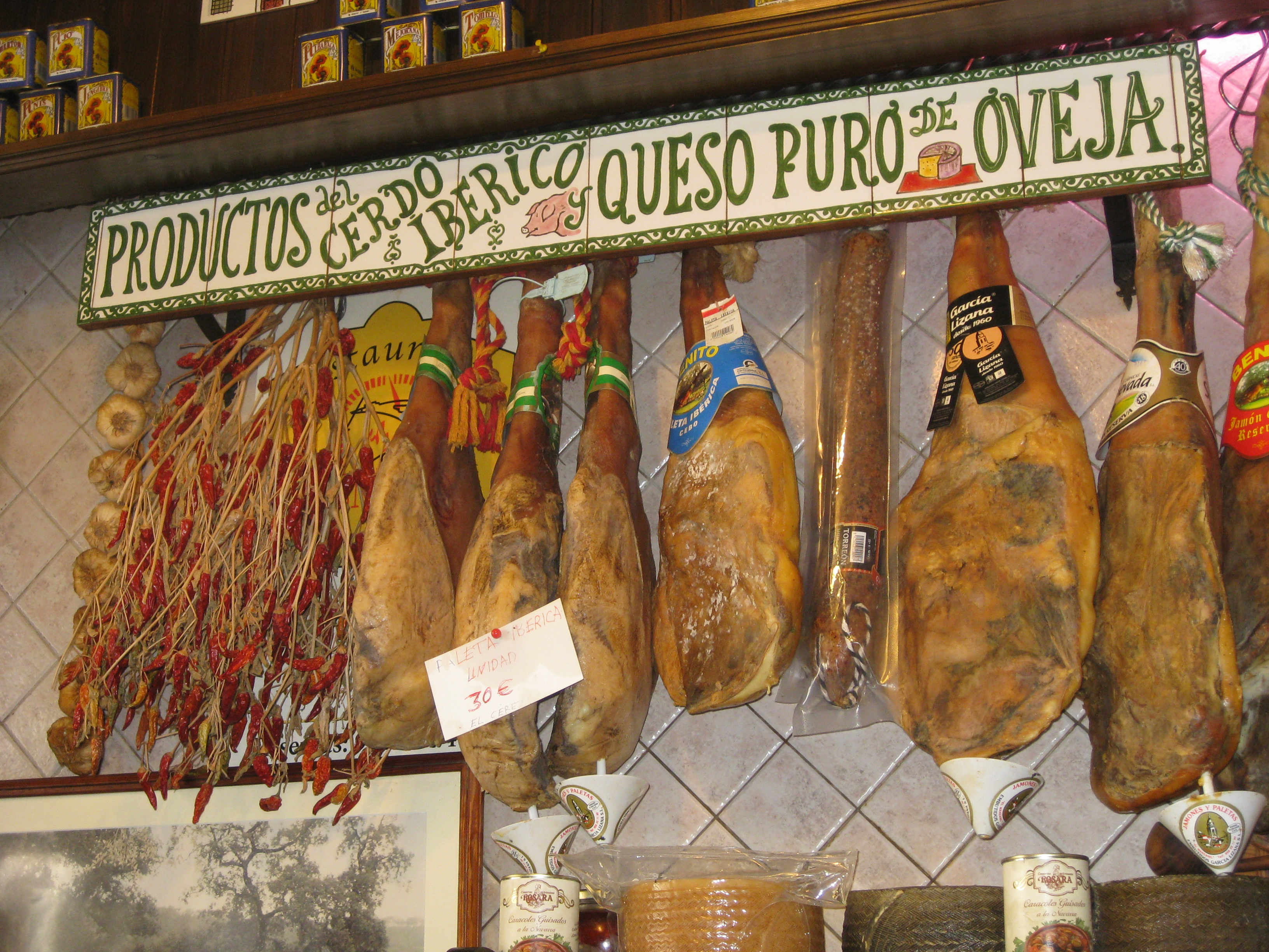 Most of the bars and restaurants will hang the hams for all to see. Note the little cones that are on the bottom, this is to catch the fat drippings.