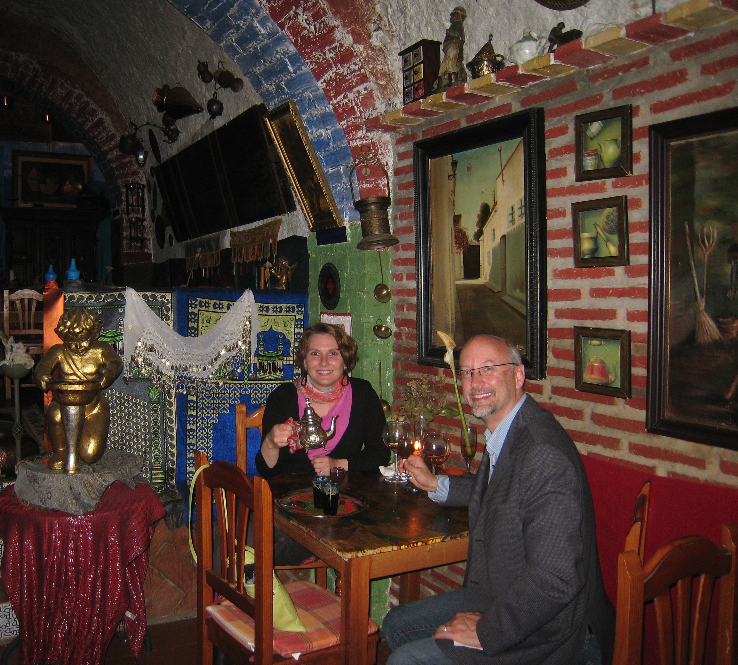 What a crazy place, set in a cave. Because we were the only diners – the owner/chef really gave us a lot of attention. The food was a delight and unusual mix of Jewish, Moroccan, and Mediterranean. It was served in small portions and drinks with each serving…..here the chef is pouring tea.