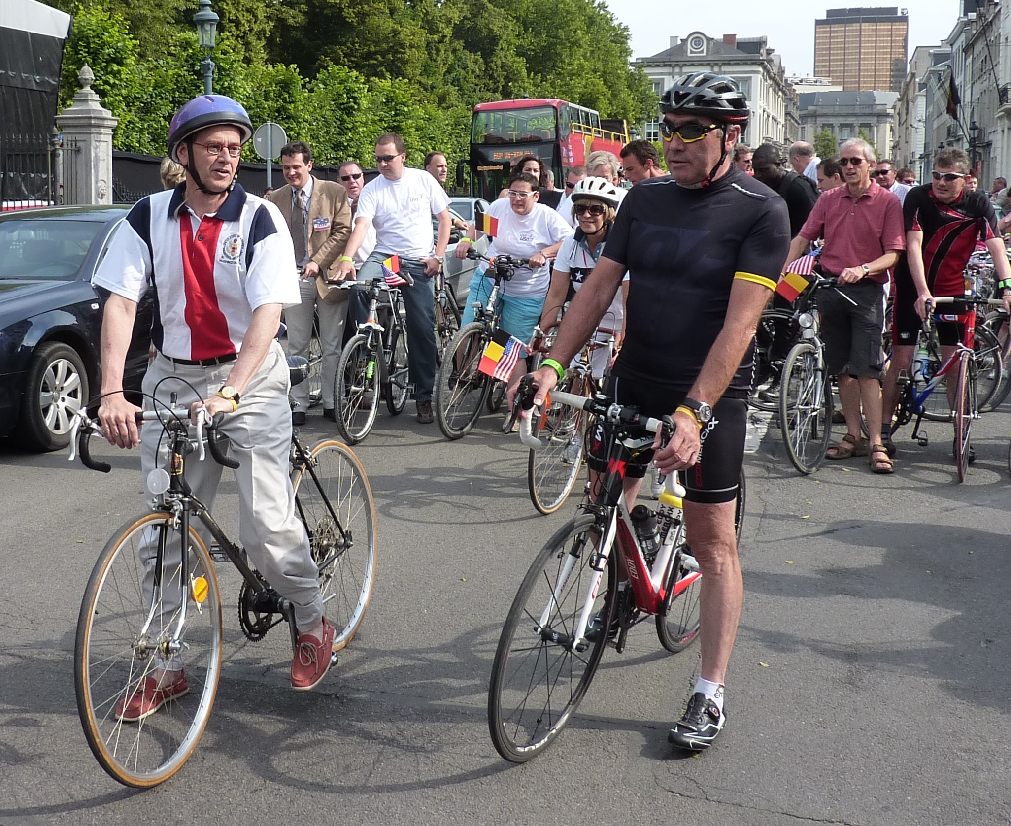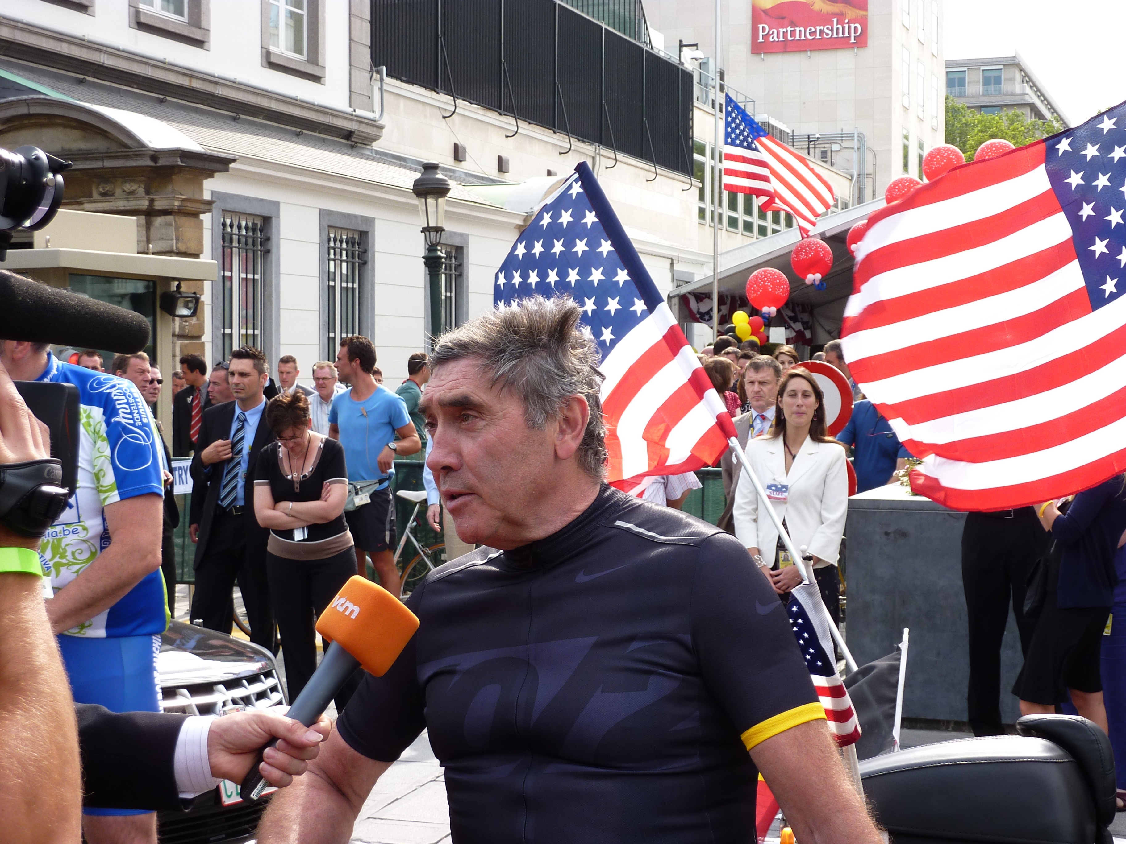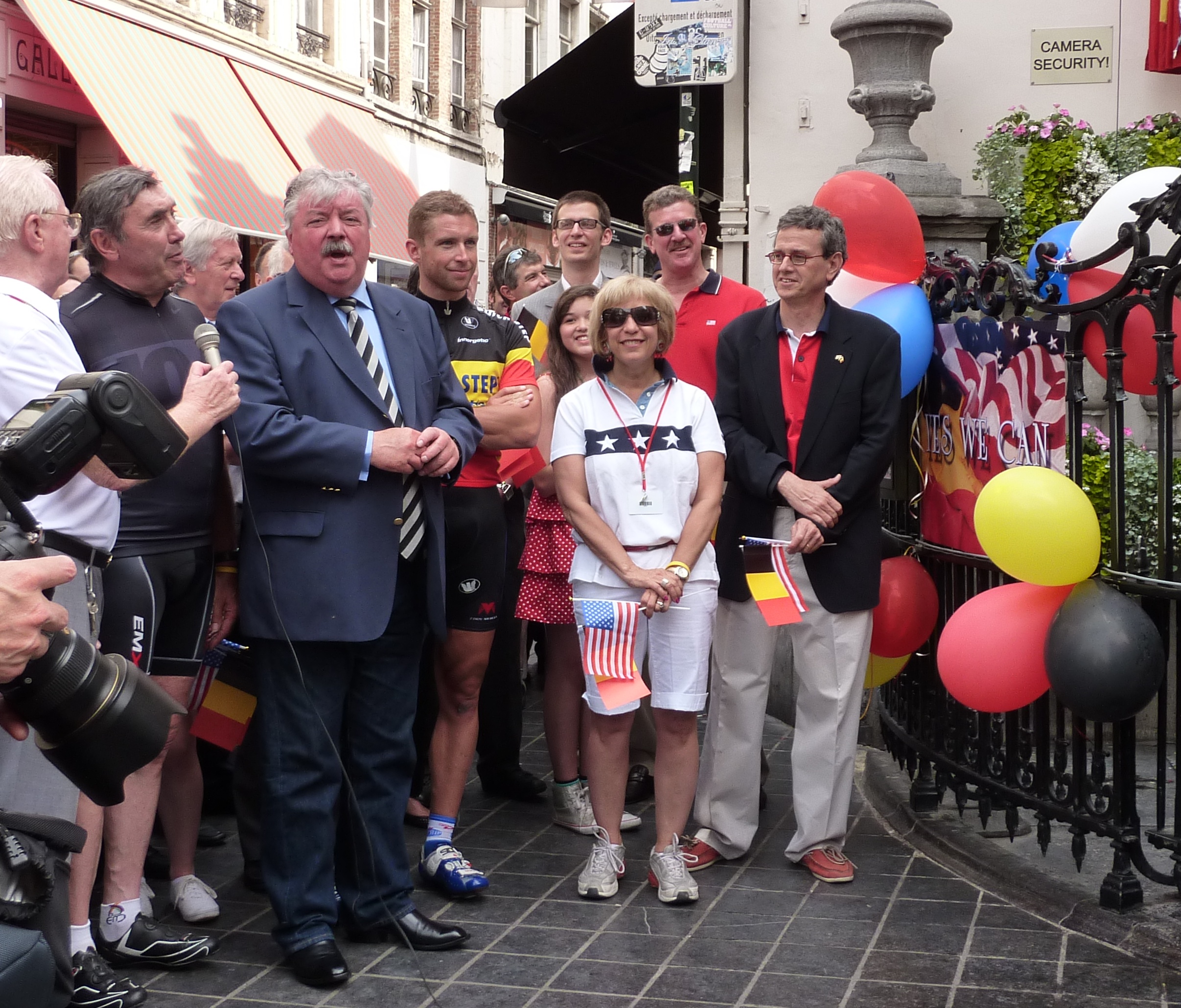 Our new ambassador, Howard Gutman, planned a big celebration on July 1st so everyone could participate. In honor of the up-coming Tour De France, he arranged a bike ride from the embassy to the Grande Place with Eddy Merckx leading the pack.