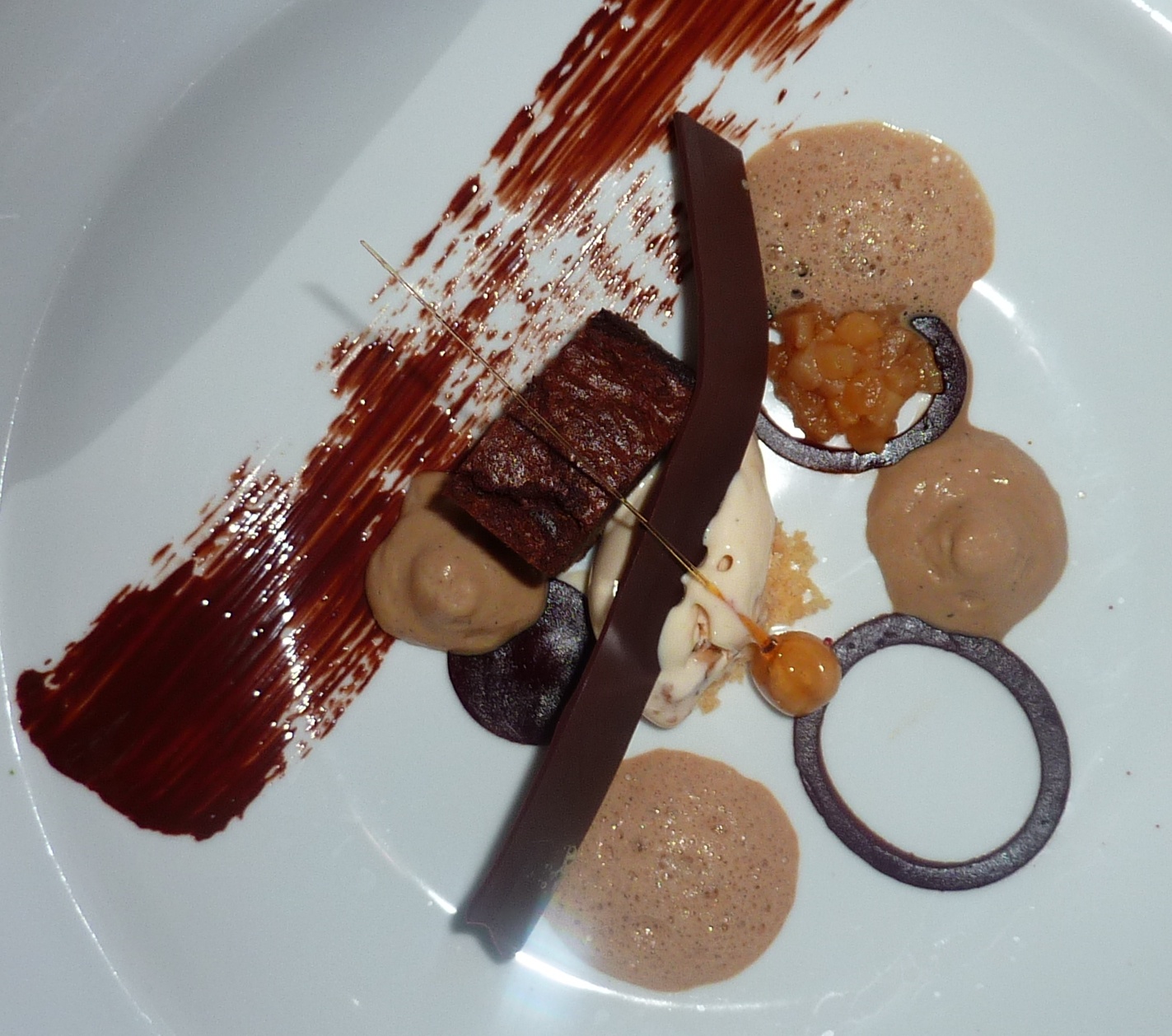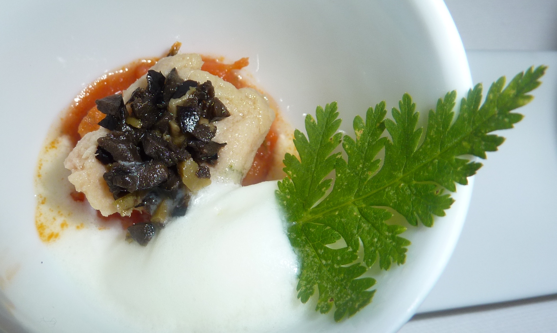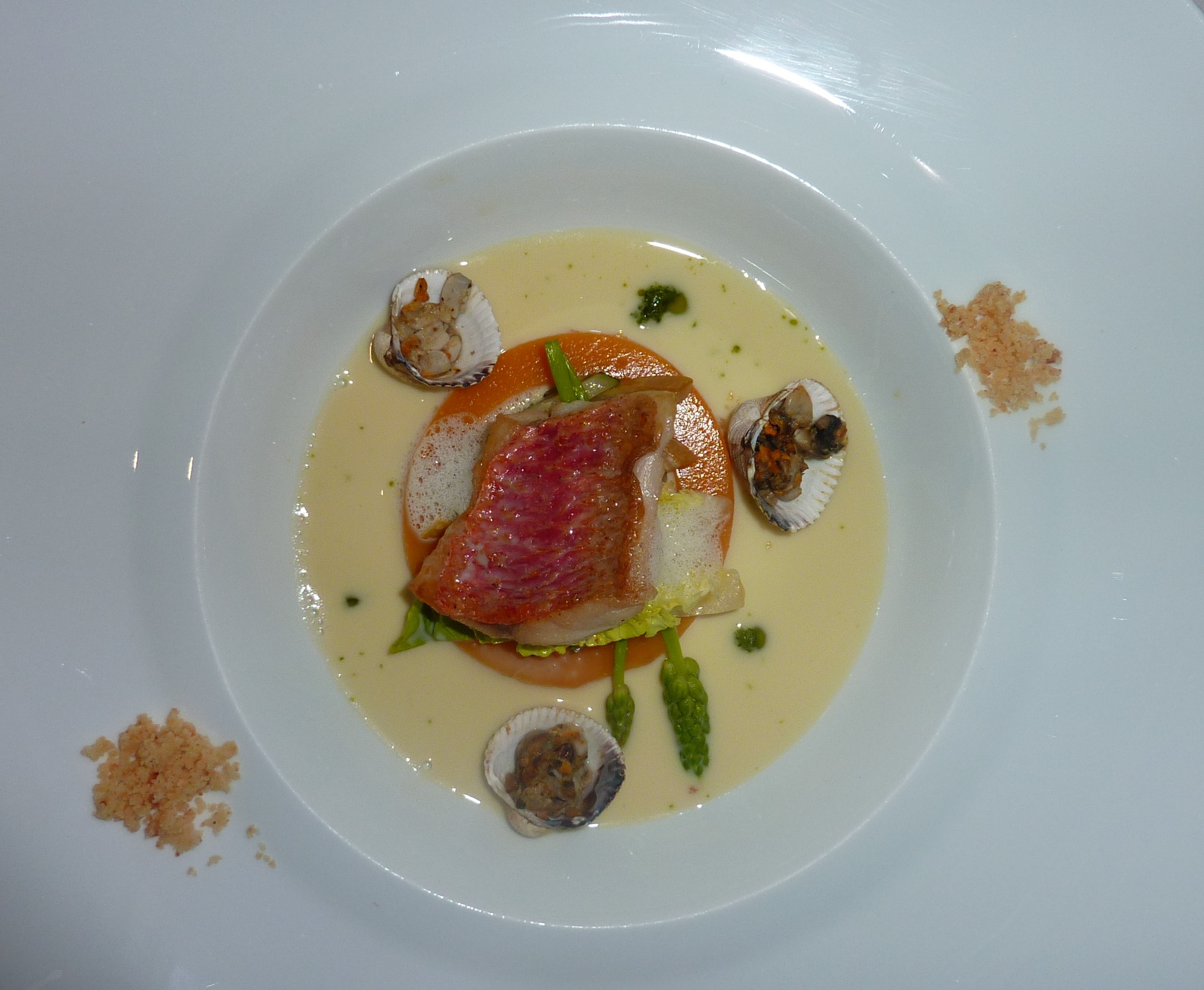 And finally the real appetizer – a lovely white fish, called Saint-Pierre served with eggplant, grapefruit, saffron and a few other tasty morsels.