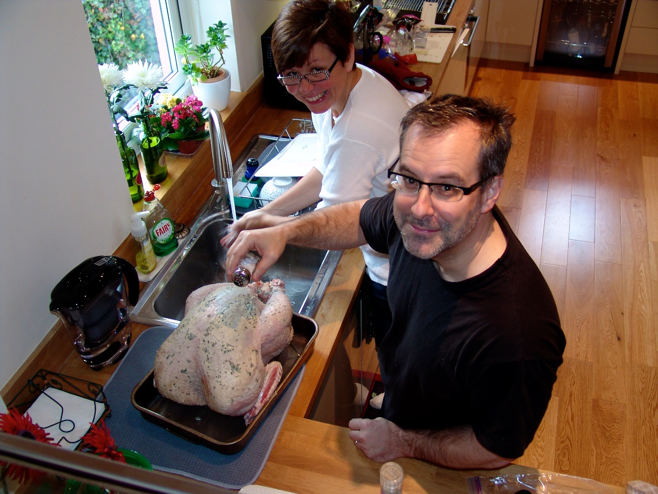 Back to Thanksgiving. D2 and A prepping the turkey.