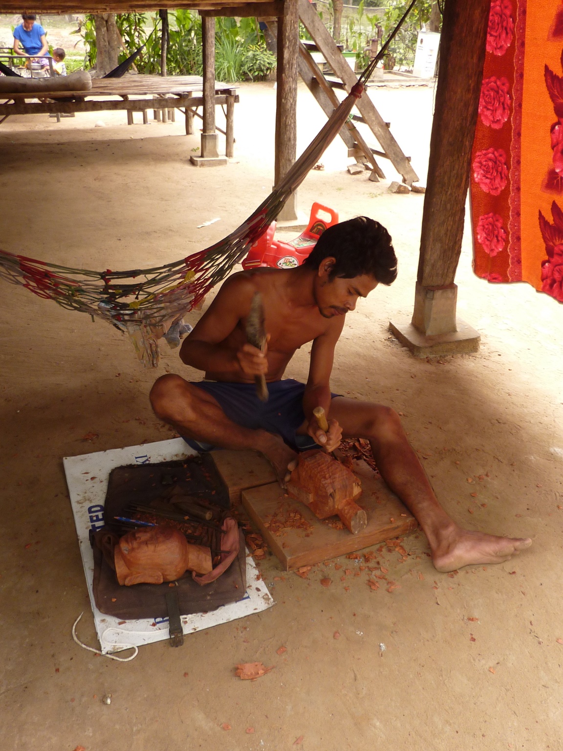 Fortunately we had our guide with us the day we saw this man carving a head of the king out of wood so we were able to ask him about it. His wife and baby are in the photo above.