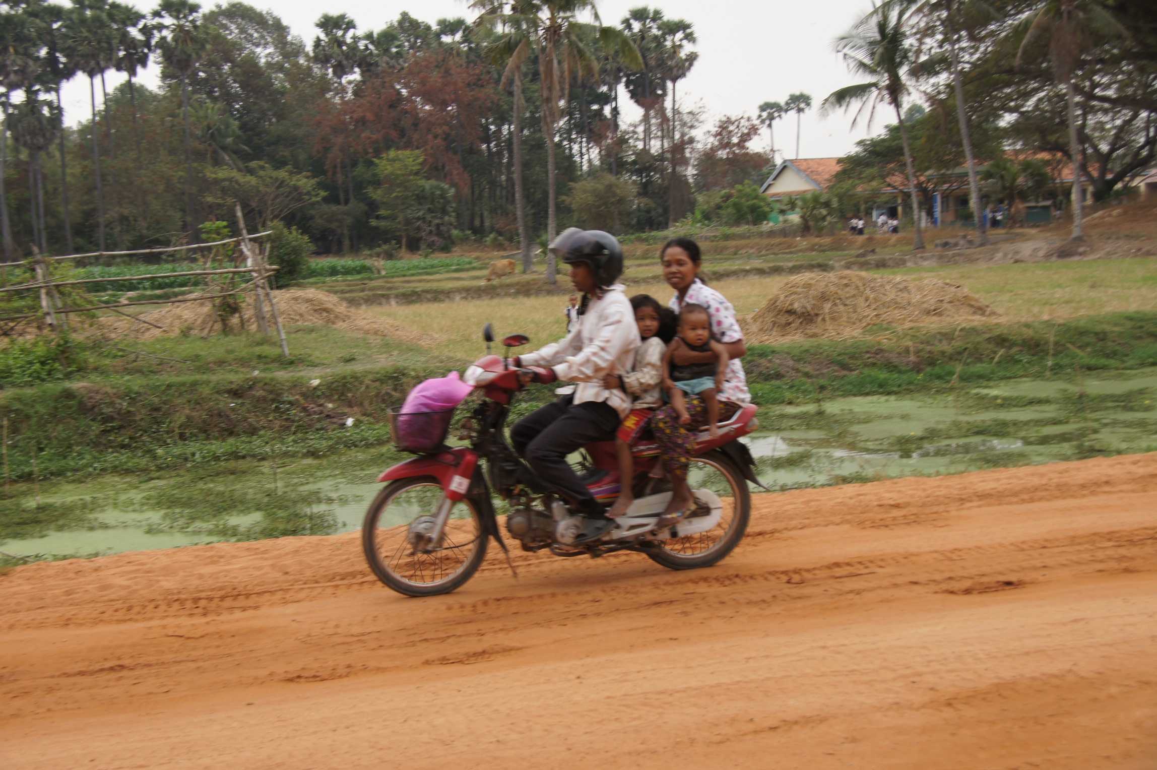 This is a very common scene – a family of three on a motorcycle.