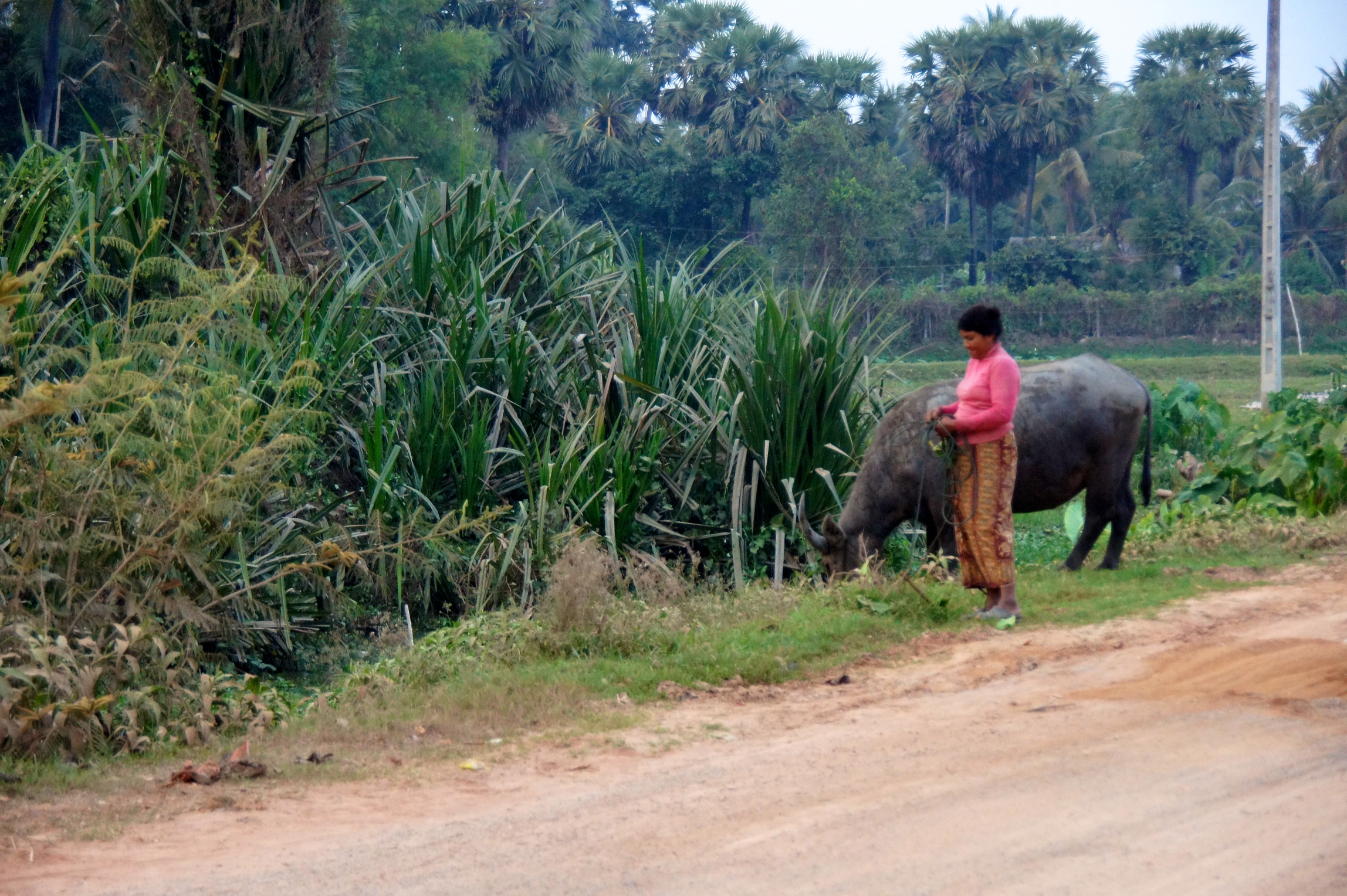 And this woman was walking her water buffalo home on a leash.