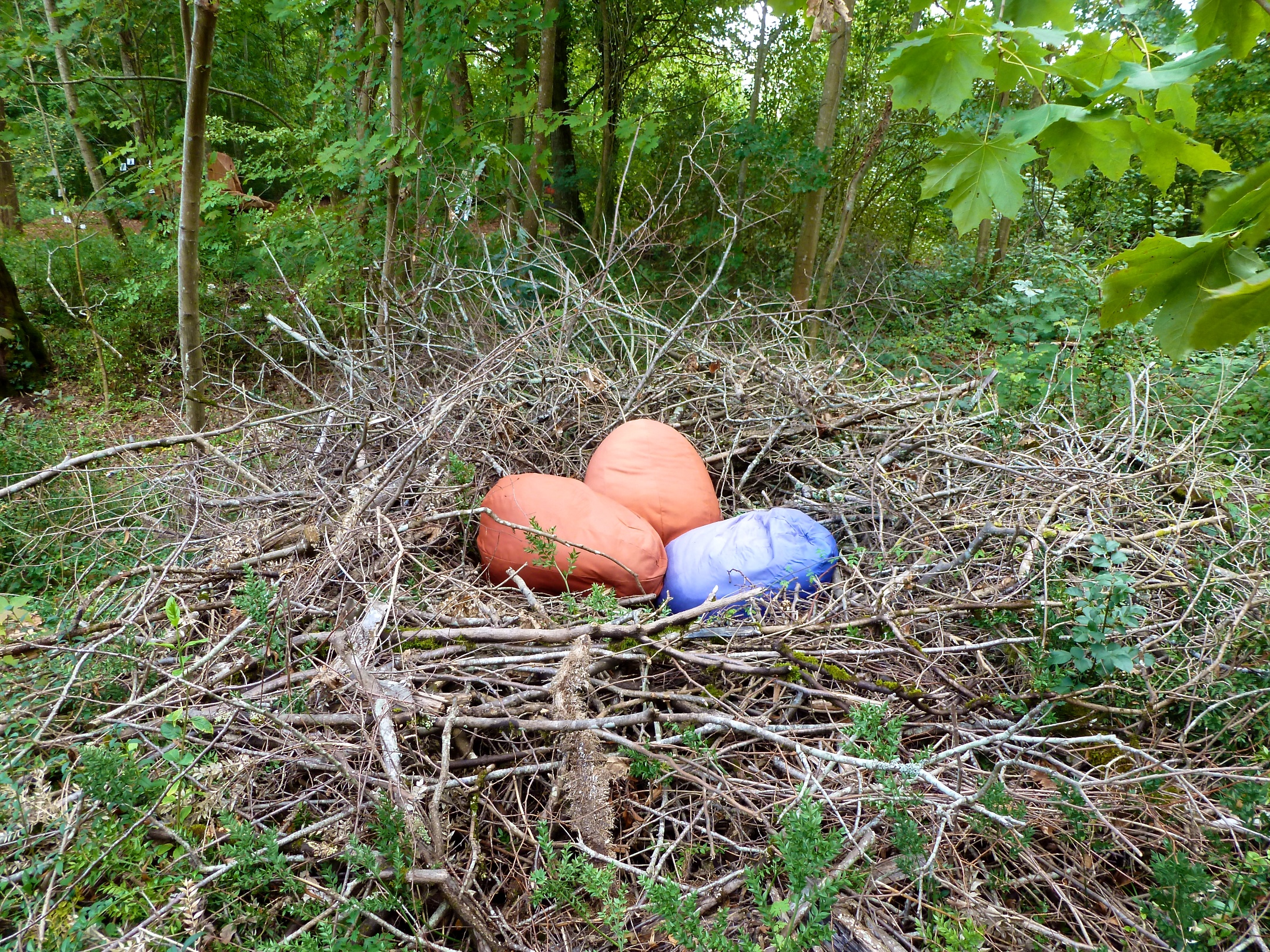 As we walked through the lovely forest we discovered interactive art displays, like these over-sized bird nests with giant eggs.