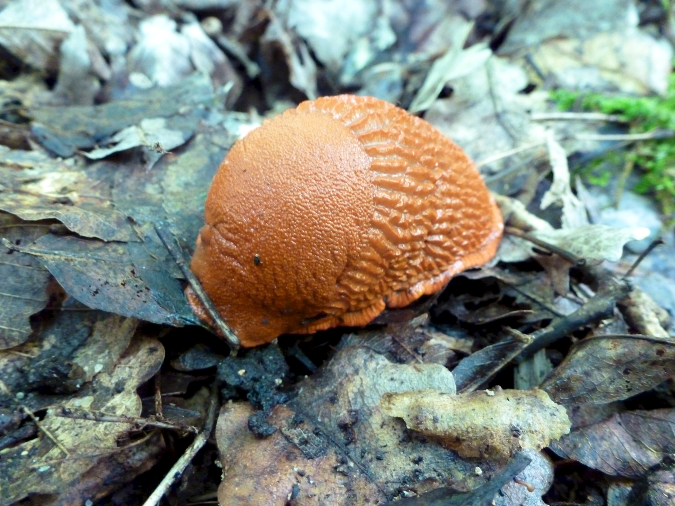 We also stumbled upon this interesting guy. It is called arion rufus or the red slug. Most people report their color as orange (like this one), not red as the name implies. They live in the woods around the vineyards, preferring the dark and moist ground to the bright sun. It was approximately three inches long. D almost picked it up as he thought it was a rubber toy.