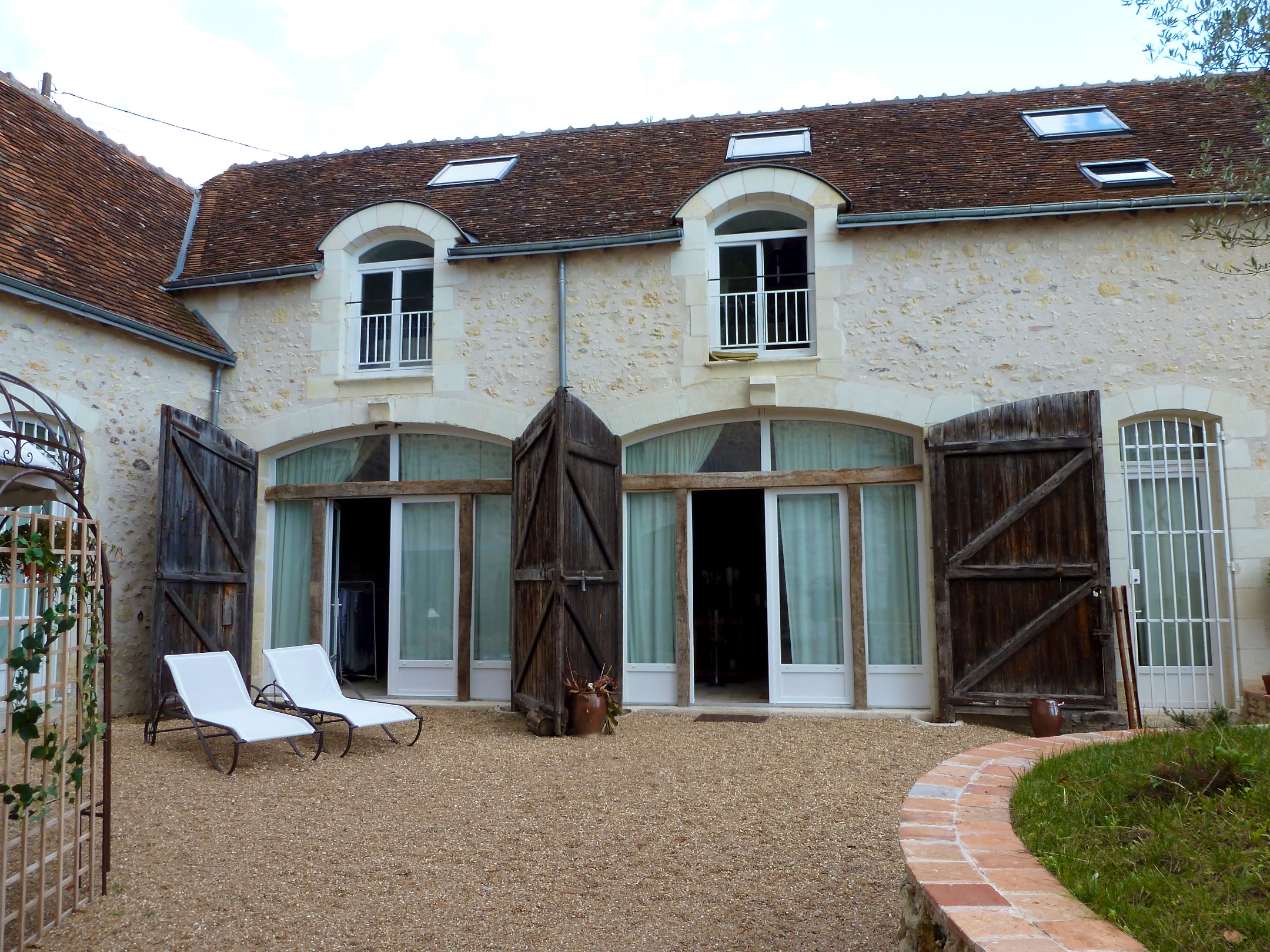 Gîtes are generally old farm worker's cottages or converted outbuildings and barns. The building below is the owner's house and had the most gorgeous interior I have ever seen – magazine quality. Don't you love those big old doors?