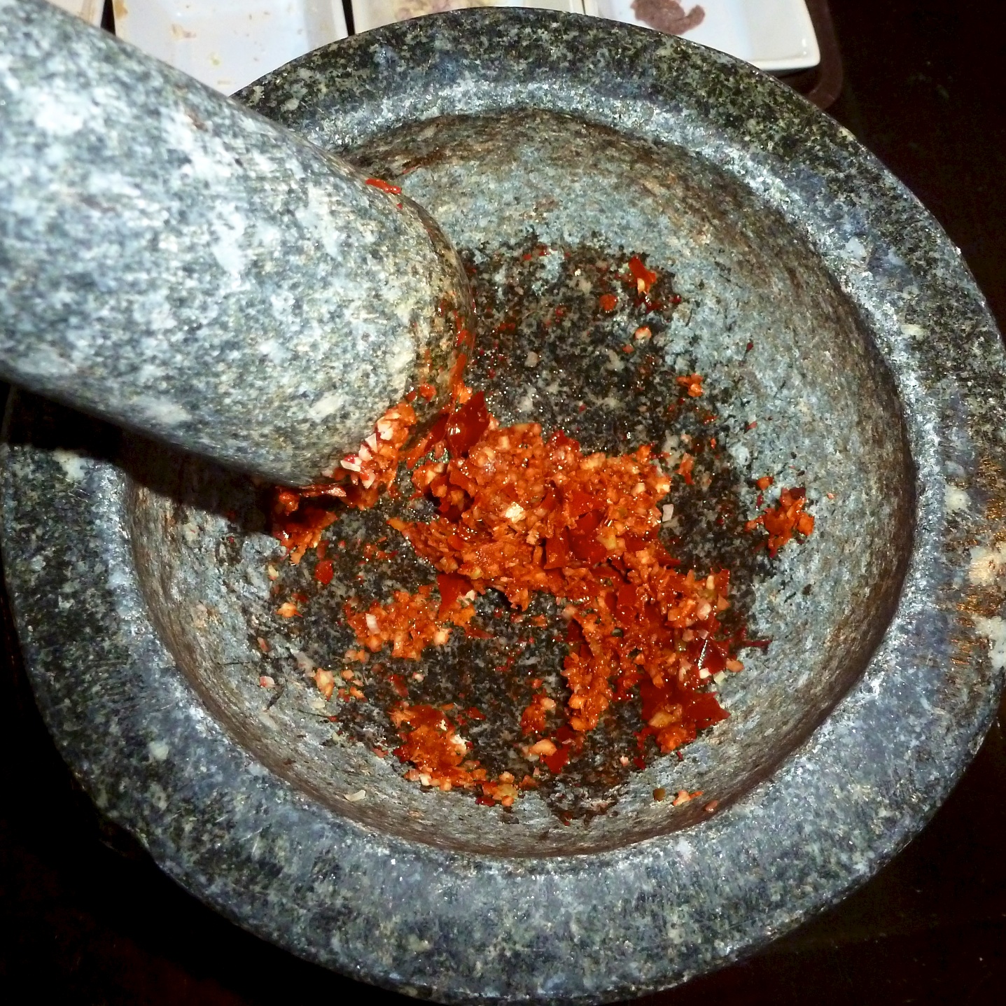 I have never used a mortar and pestle before. D loves to make pastes with them.