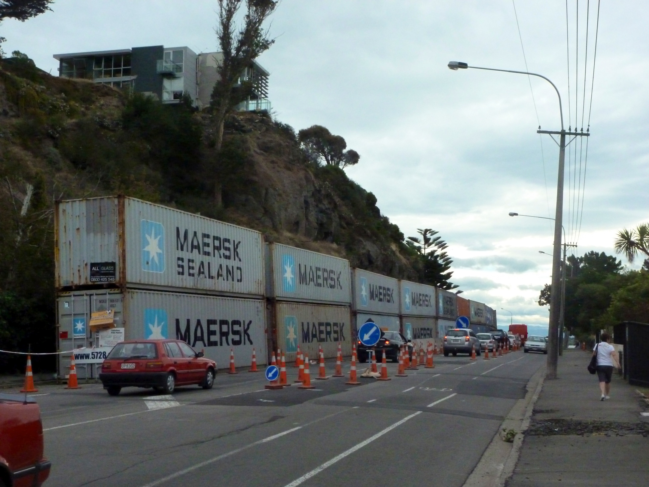 A year later the people of CHCH are still suffering. We could see the damage everywhere. Every few weeks more houses are being declared unlivable due to the structural damage. And many of these cannot even use the land to rebuild, as the soil has been deemed unbuildable. There are large neighborhoods were the houses are completely empty and cargo containers everywhere to help contain the property if it falls. Look at the house on the edge of the land in the photo below. It is very sad.