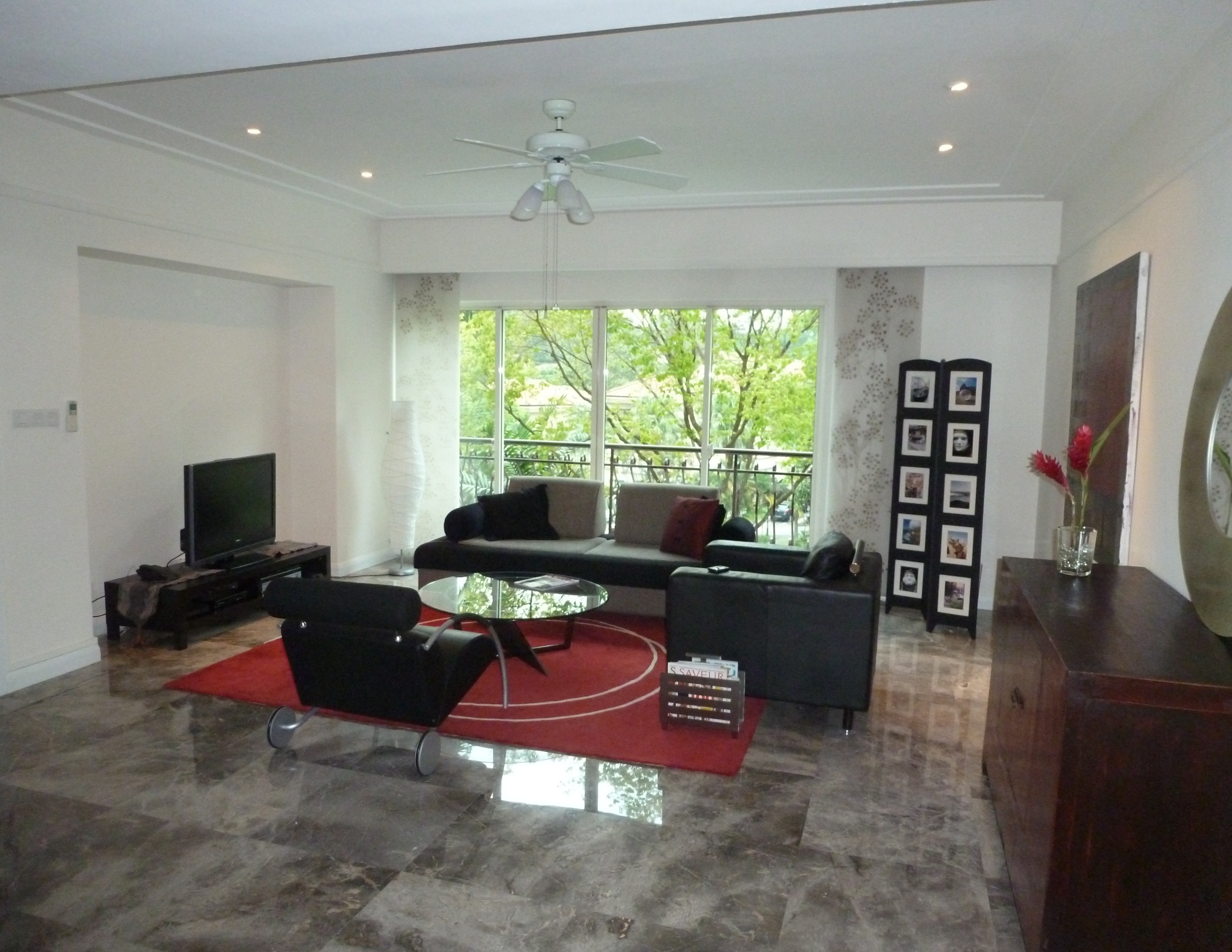 Ohh.. Your living room looks so spacious. I wonder how many guests can it accommodate. Heheh. Did you renovate this apartment, or that is the original design? How much do you pay for it monthly?