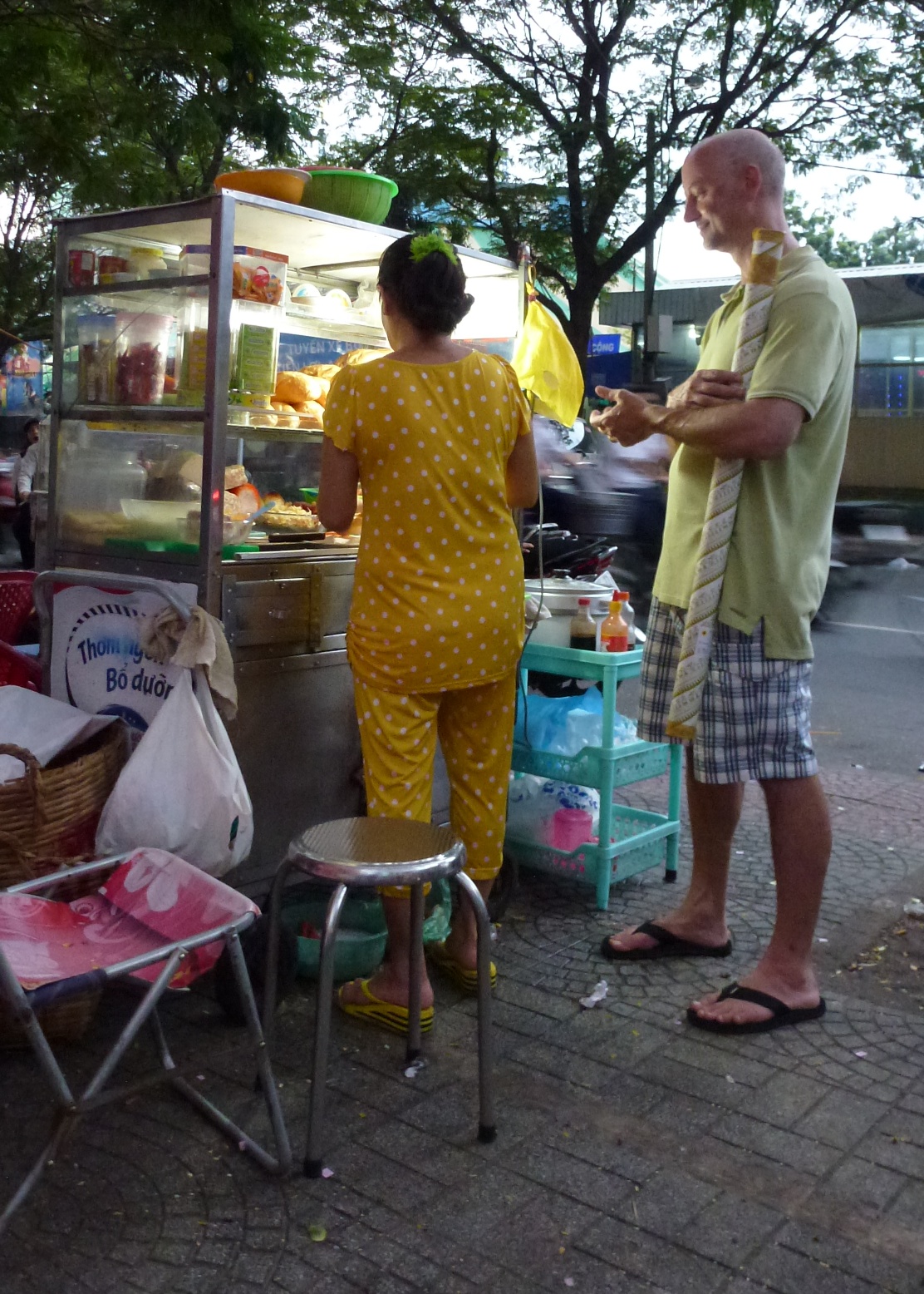 Like most of the Asian countries we have visited, street food is very popular in HCM City. This is efficient, selling homemade noodles off the back of a scooter.