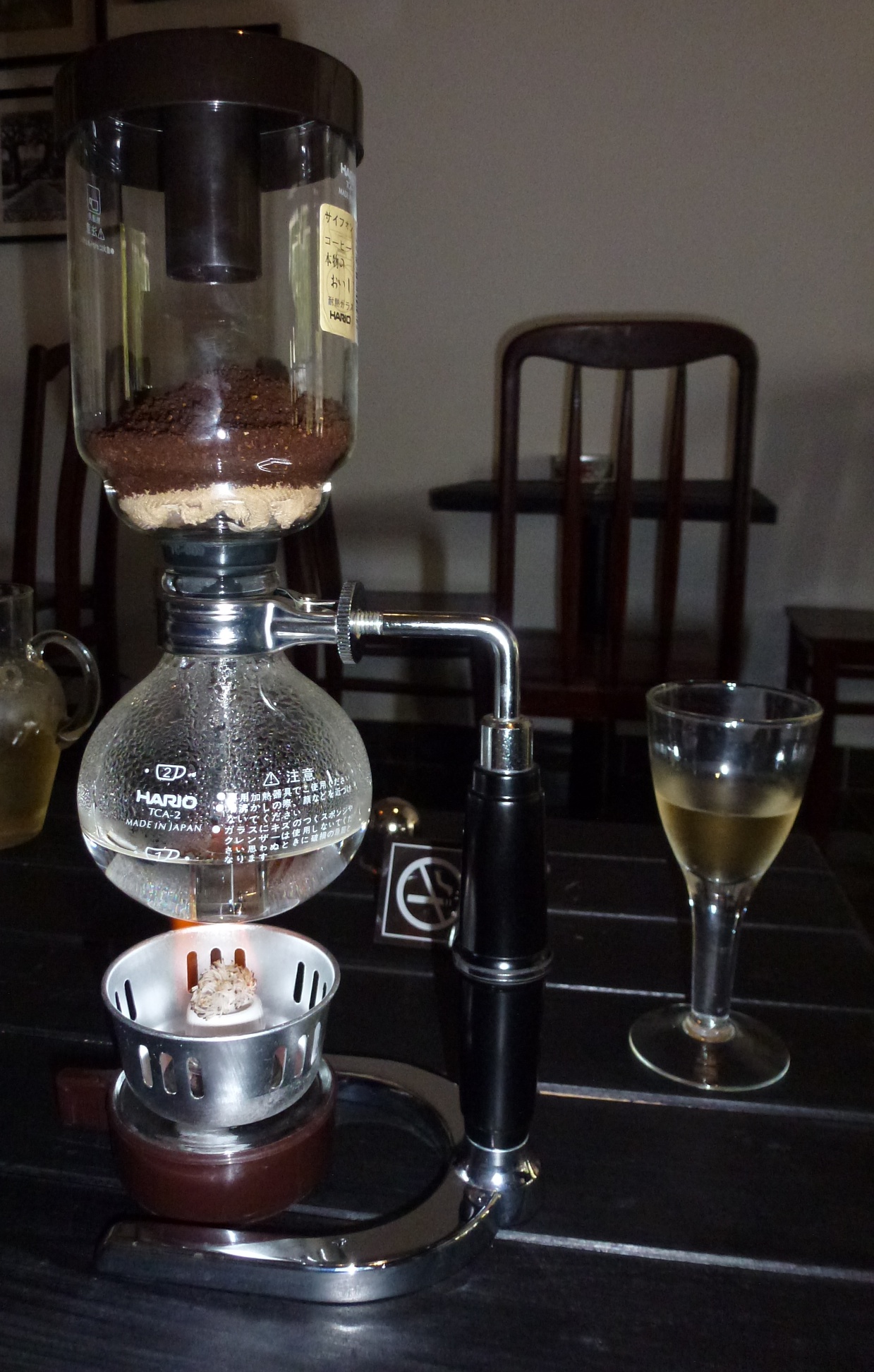make coffee using this method you fill the lower carafe of the siphon with water and the top with your ground coffee and a filter.