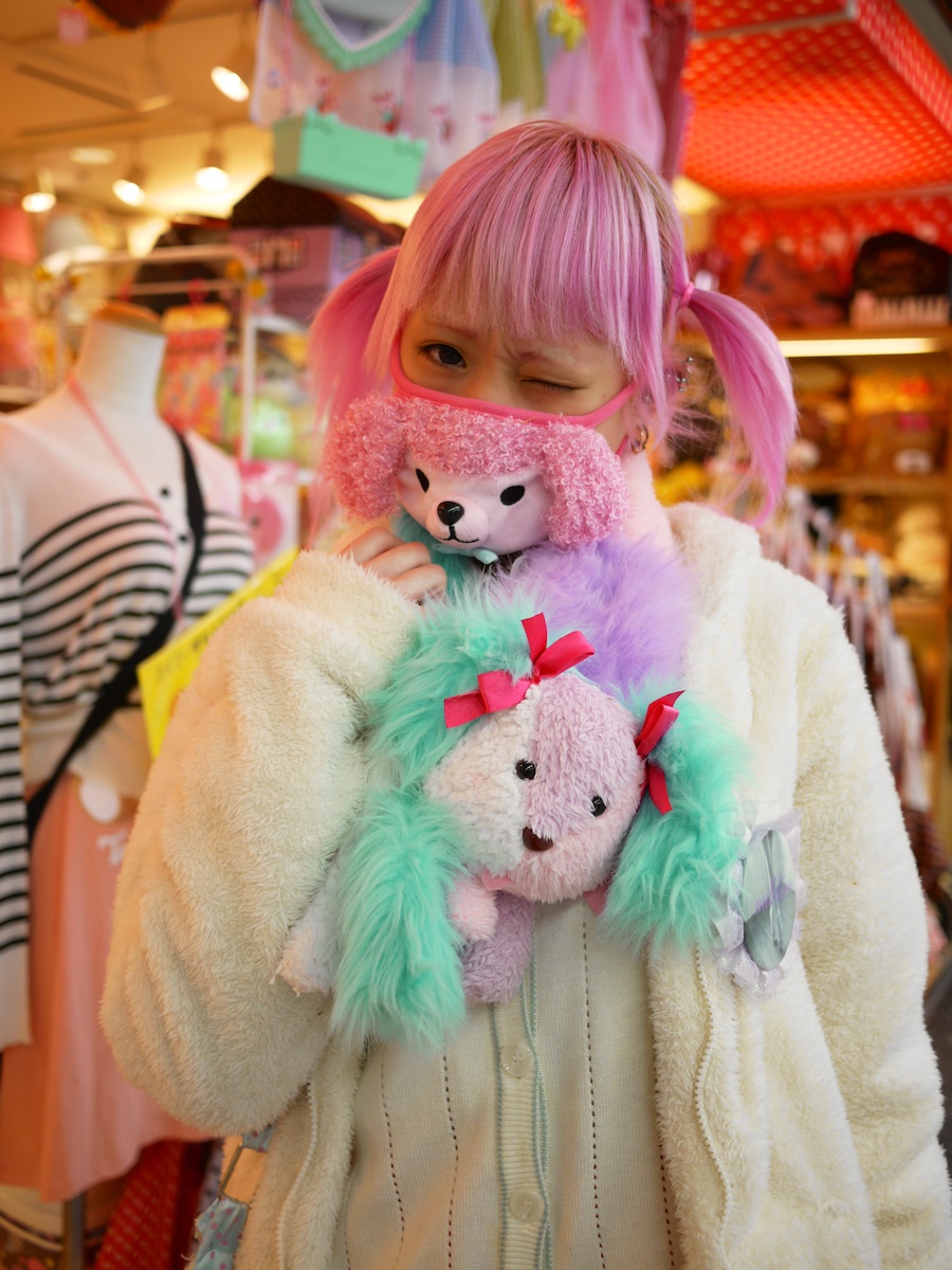What a special treat, all these photos. I especially loved the close-up shots of the geishas & their elaborate hair ornaments. The vending machines, train (space capsule?), and green tea donuts look awesome too. Also loving the fashion out there- the guy with a black kimono type garment, and the chick with pink hair. Oh and the detail captured in the pear and cherry blossoms! Fantastic post.