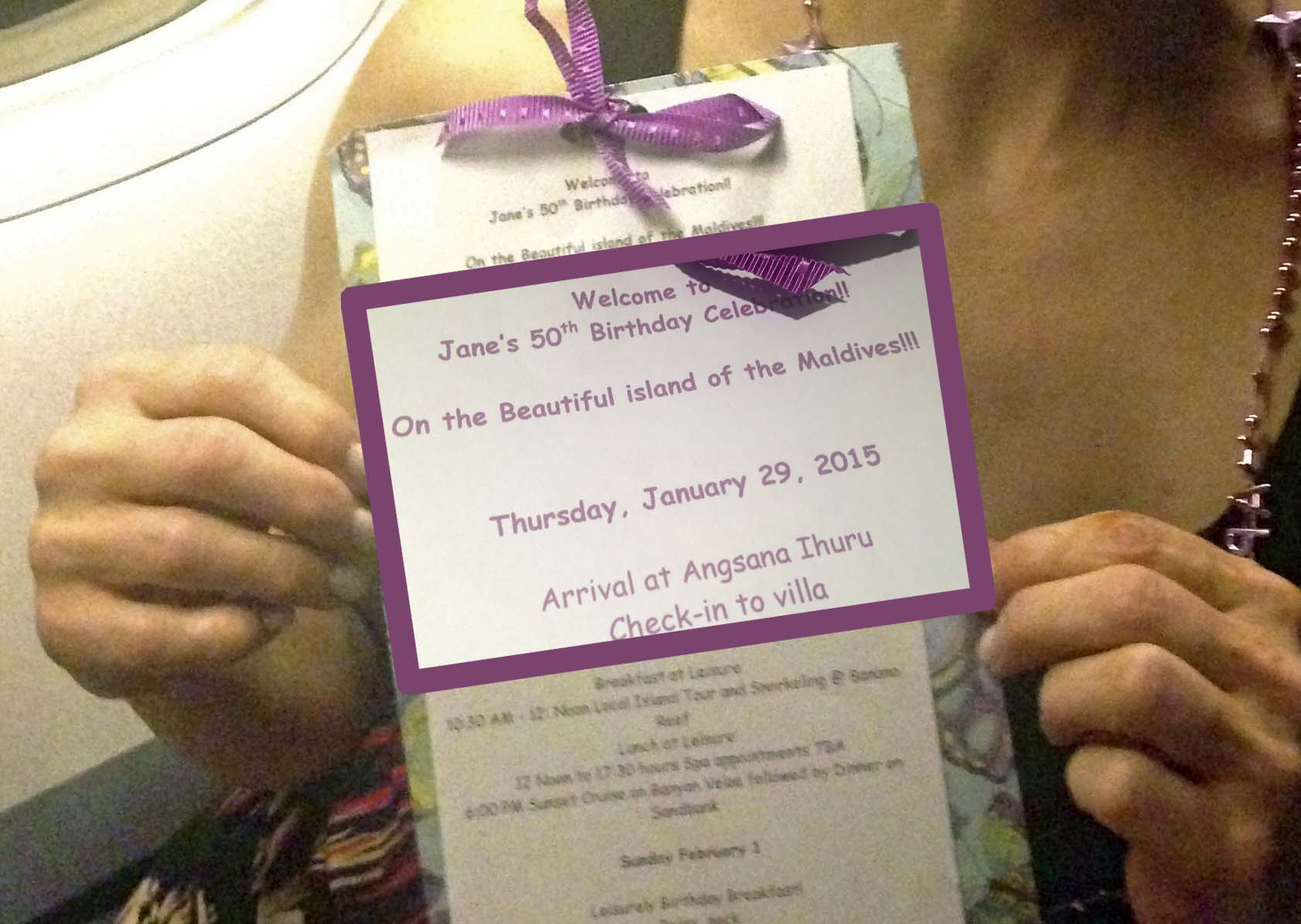 So…. we purchased tickets to the Maldives, planed the entire trip, but did not tell Maria and Sue.  We wanted it to be a surprise.  I knew it was a dream trip for my cousin, but when she had asked early on about the Maldives, I told her it was just too expensive… which it normally is!