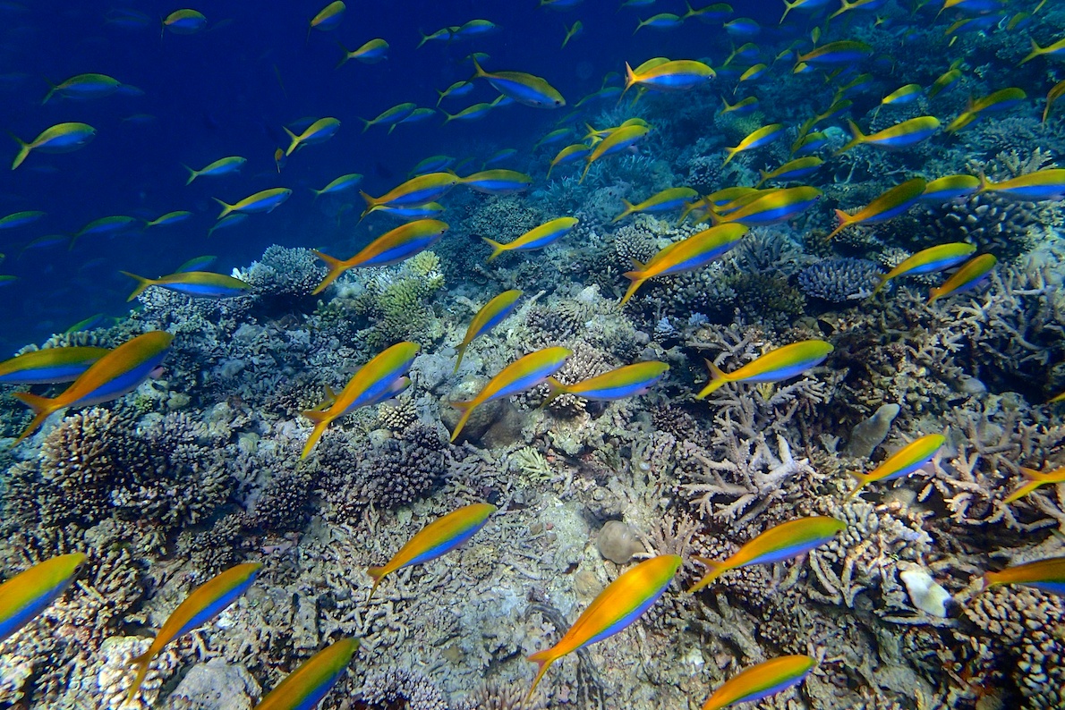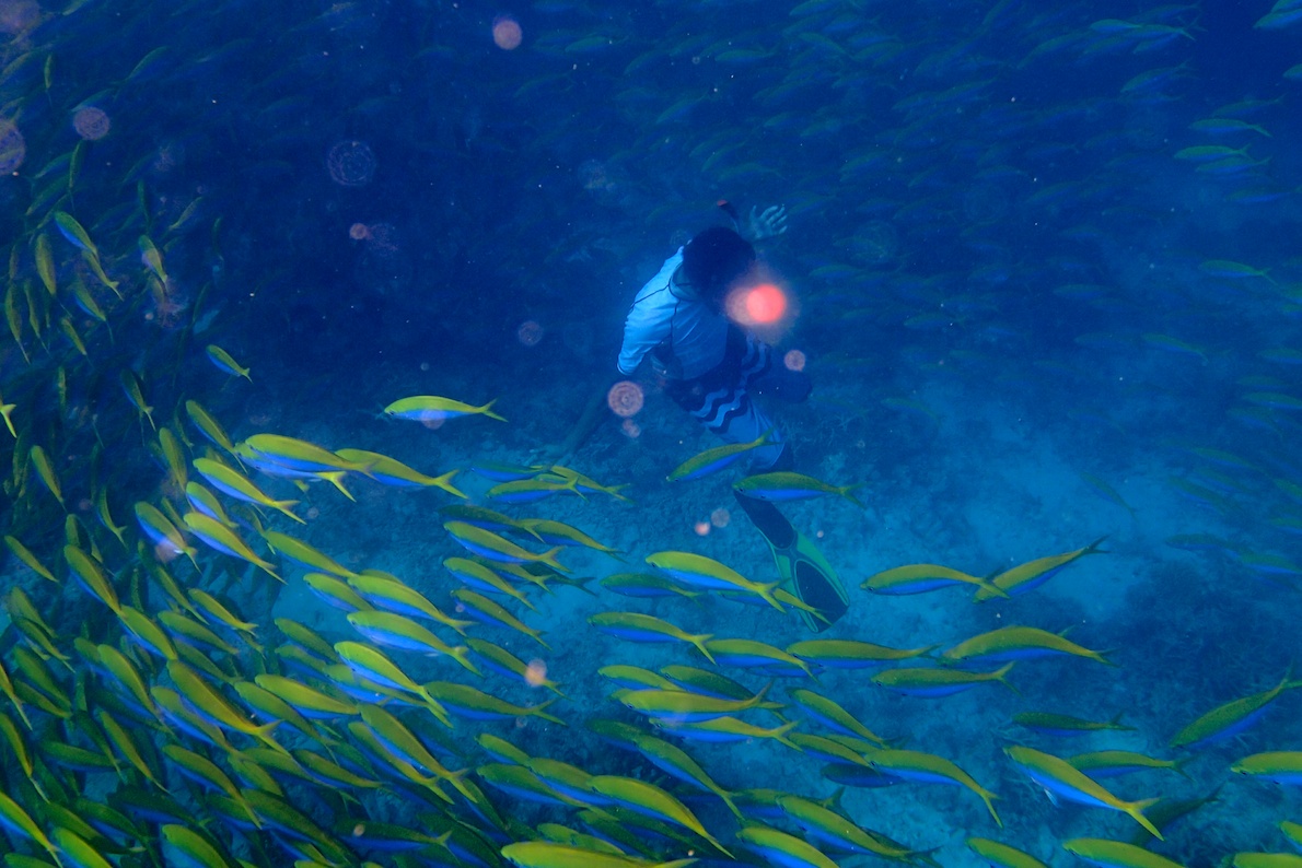 The most spectacular scene was at the very end – and of course we ran out of memory space on the camera at that exact point!  Moosa went deep and swam directly into this school of fish.