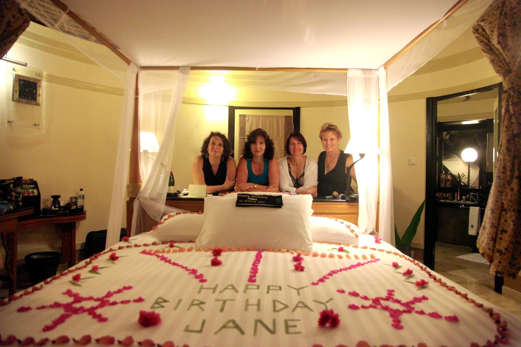 When we got back to our rooms, they had decorated for Jane's Birthday.  But there was a gift for each of us – a sarong with our names embroidered on them.  You will see us wearing them in a group photo towards the end of this post.