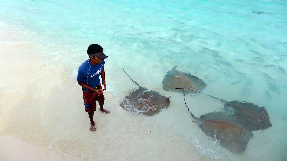 The marine center (our guide Moosa) does a daily feedings of stingrays and sea turtles.  It is fascinating that wild stingrays know to come to a specific location on the beach everyday around 4:30 to be fed.