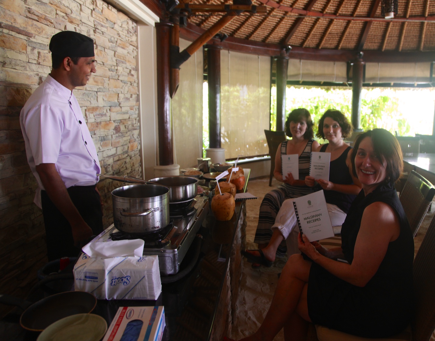 We took a demonstration cooking class to learn how to make Maldivian food.   We learned how to cook Mas Goulah (fish balls) with coconut Roti, Kulhi Boakibaa (tuna dish), and chicken curry.  They cook most dishes with coconut milk so I was in heaven.   SO YUMMY!