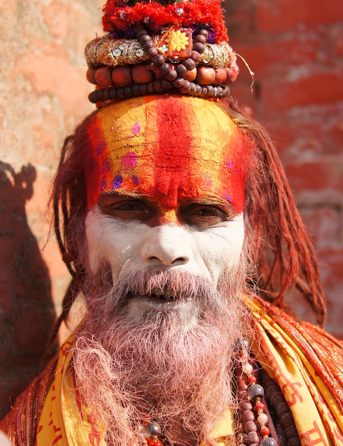The men in the photo are not dressed up for tourists, they are real Sadhus (holy men). This was taken at the Pashupatinath Temple in Nepal.