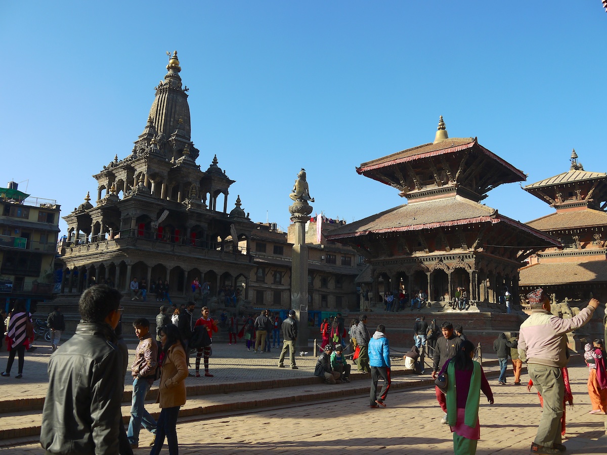 Kathmandu Valley comprises the three ancient cities of Kathmandu, Patan, and Bhaktapur; which were once independent states ruled by the Malla kings from the 12th to the 18th centuries.We stayed in Patan in a small boutique hotel called Traditional Homes – Swotha. Our hotel was a block from the stunning square shown in the photos above and below.
