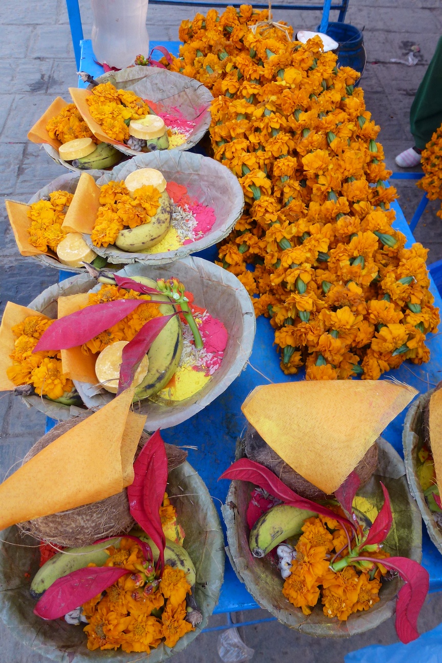 As you walk towards the temple, there are vendors selling everything from chickens, to paint pigments, to toys to flowers for offerings.