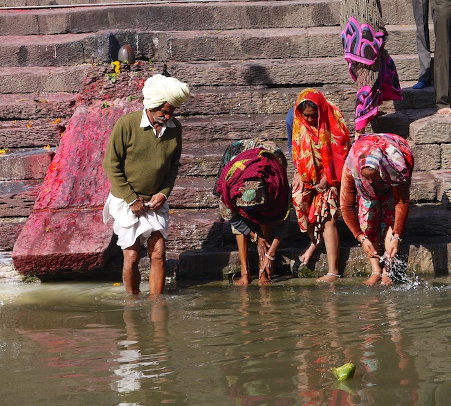 There was a group of Indian women who asked to have their photo taken with me; and as a thank you, the one women offered us a blessing. She had holy water from the Ganges in India, the Bagmati (where we were), as well as a few other holy sites.