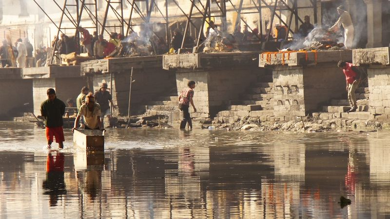 People also wade through the water looking for gold that may have fallen off of the bodies. You can see two men below pushing a casket through the water. I have to admit, this was one of the most bazaar experiences we have ever witnessed.