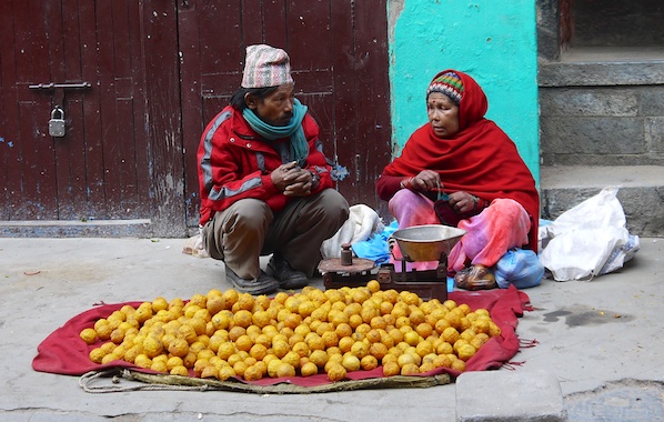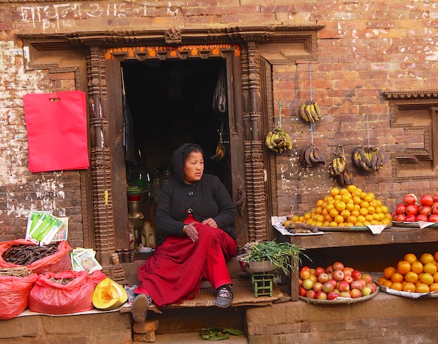 … and spinning cotton into yarn. These women are not just spinning for tourists, they make a living from the yarn they spin. There’s big business in the textile industry throughout the Kathmandu valley in Nepal today.