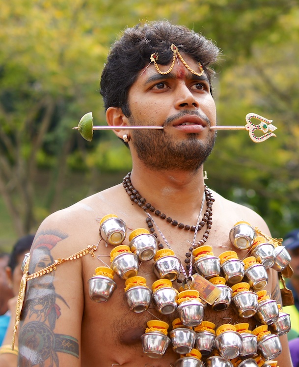 It is believed that carrying the kavadi washes away sins through self-inflicted suffering.