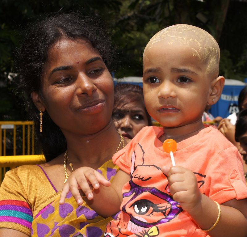 Many devotees who do not participate in the procession will still shave their heads to honor Lord Murugan.